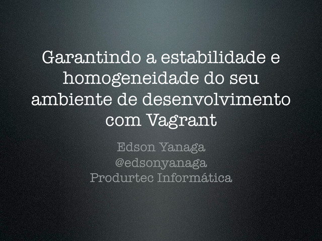 Não é fácil garantir a execução e desenvolvimento adequados com o desafio que temos hoje de implementar sistemas que integram diversos frameworks, serviços e ferramentas diferentes. Situações como "na minha máquina funciona" ou "no ambiente de teste funciona/no de produção não" são infelizmente muito comuns. Some-se a isso a diversidade de ambientes e computadores que utilizamos para codificar (MacOSX, Linux e Windows). O Vagrant é uma ferramenta que permite que você automatize e configure facilmente ambientes homogêneos em diversas plataformas. Nesta palestra demonstraremos como criar um ambiente de desenvolvimento Java com vários serviços configurados e como fazer deploy deste ambiente localmente e na nuvem (AWS).