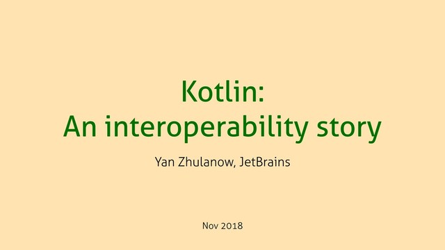 Kotlin: An interoperability story Yan Zhulanow, JetBrains Nov 2018