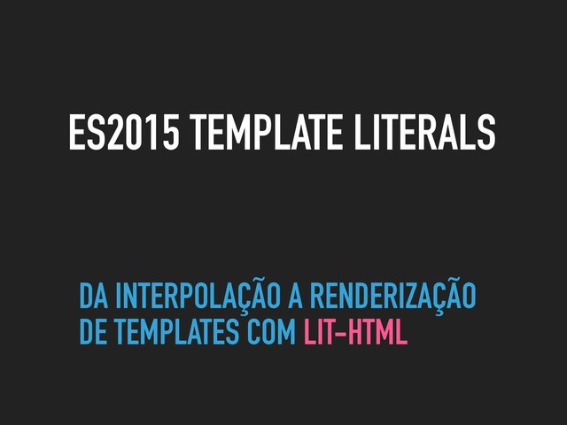 Nesta palestra, vamos ver a evolução da utilização e renderização de templates HTML, ver mais a fundo a especificação de template literals da ES2015 e como podemos criar templates eficientes com lit-html