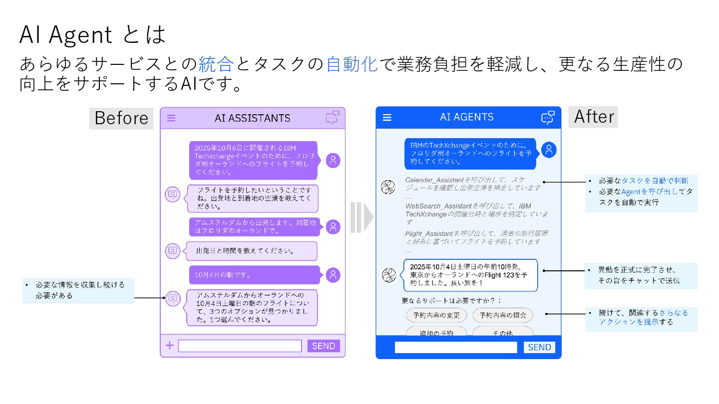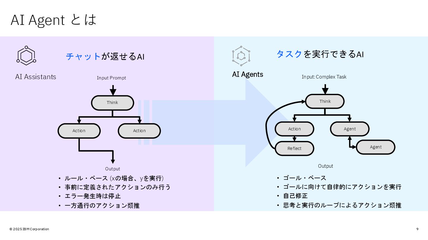 4. © 2025 IBM Corporation 9 チャットが返せるAI AI Assistants AI Agents