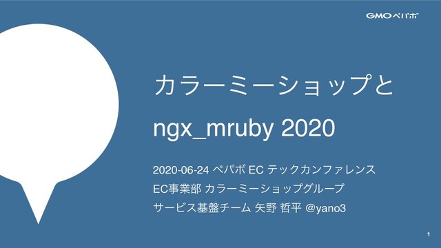 1 Χϥʔϛʔγϣοϓͱ ngx_mruby 2020 2020-06-24 ϖύϘ EC ςοΫΧϯϑΝϨϯε ECࣄۀ෦ Χϥʔϛʔγϣοϓάϧʔϓ