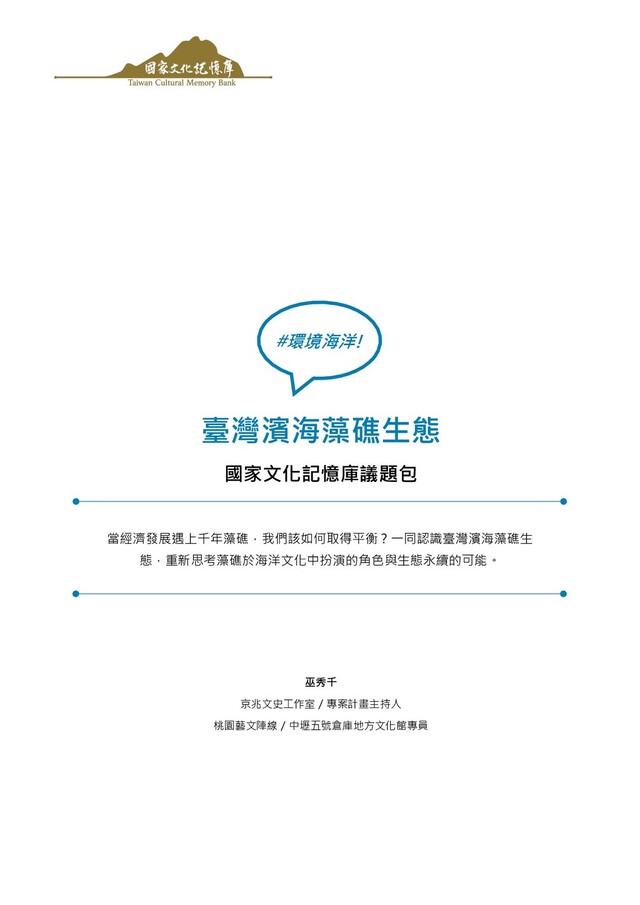 「環境」 對於我們這一代而言是什麼意思?而破壞環境的背後 , 是意味著 「強 迫性」 的經濟發展還是環境被放逐?身為島國子民的我們,將成為什麼樣的角色 來看待環境開發與守護環境的衝突? 臺灣是一座緊鄰亞洲大陸的島嶼,地域跨在琉球群島與菲律賓島嶼之間,也 同時兼具熱帶與亞熱帶兩種氣候 ,是歷經過五次冰河時期與二次板塊大擠壓而浮 現出的島嶼。正因為如此,臺灣擁有許多特殊典型的地質與生物多樣性,從山林 到海邊的地方,於是就形成了豐富的物種鏈、生物聚落等,而藻礁這塊面積遼闊 的生態系,歷經 7,600 年生成,在桃園西海岸北起大園許厝港,南至新屋永安, 全長綿延 27 公里,成為了海洋生物最重要的育嬰房。 透過此次有關藻礁的議題,從自身做起,從教育著手,認識環境,以及人類 面對環境危機時,我們能怎麼做?過去人類為了生存做了許多環境開發,之後對 大自然過度掠取的現象不斷發生,全世界皆是如此,生態環境逐漸成為被犧牲的 俎上肉。所以環境教育、綠色生活與永續發展,就必須回到最根本,就從人與人、 人與土地的對話開始。