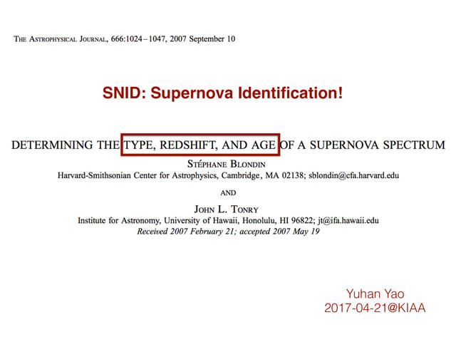 This slides is used for a paper talk on the star cluster group's weekly meeting in KIAA-PKU. I talked about an algorithm illustrated in Blondin et al. (2007) for supernova classification -- SNID !
