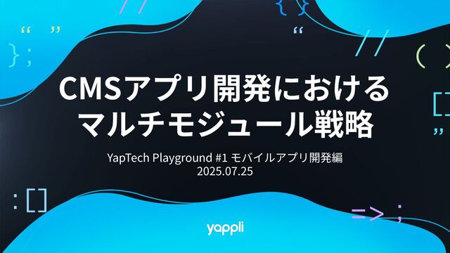 Androidアプリ開発のマルチモジュール実践事例として、Yappliでの取り組みをご紹介します。 本発表では、CMSというプラットフォームならではの開発課題に対して私たちが採用しているマルチモジュールの活用法について、 アーキテクチャのレイヤーや機能ごとに分割するアプローチとは異なる考え方によってどのようにコード品質の維持・運用に取り組んでいるのかをお伝えします。