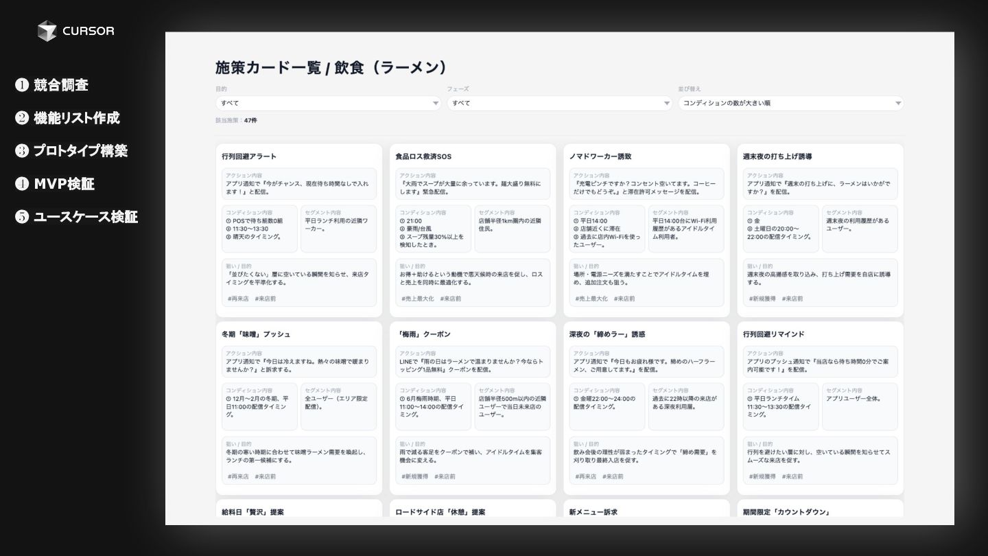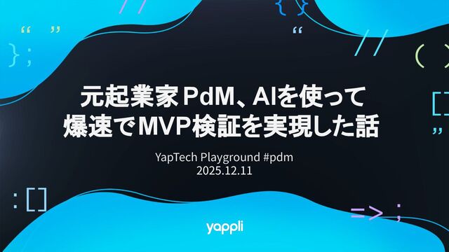 元起業家のPdMとして、成熟したプロダクトにおけるMVP検証の難しさに直面。AIで仮説整理から競合調査、UX検証までを高速化し、数日レベルの検証ループを回す"爆速MVP検証"を実現したプロセスと学びを紹介します。