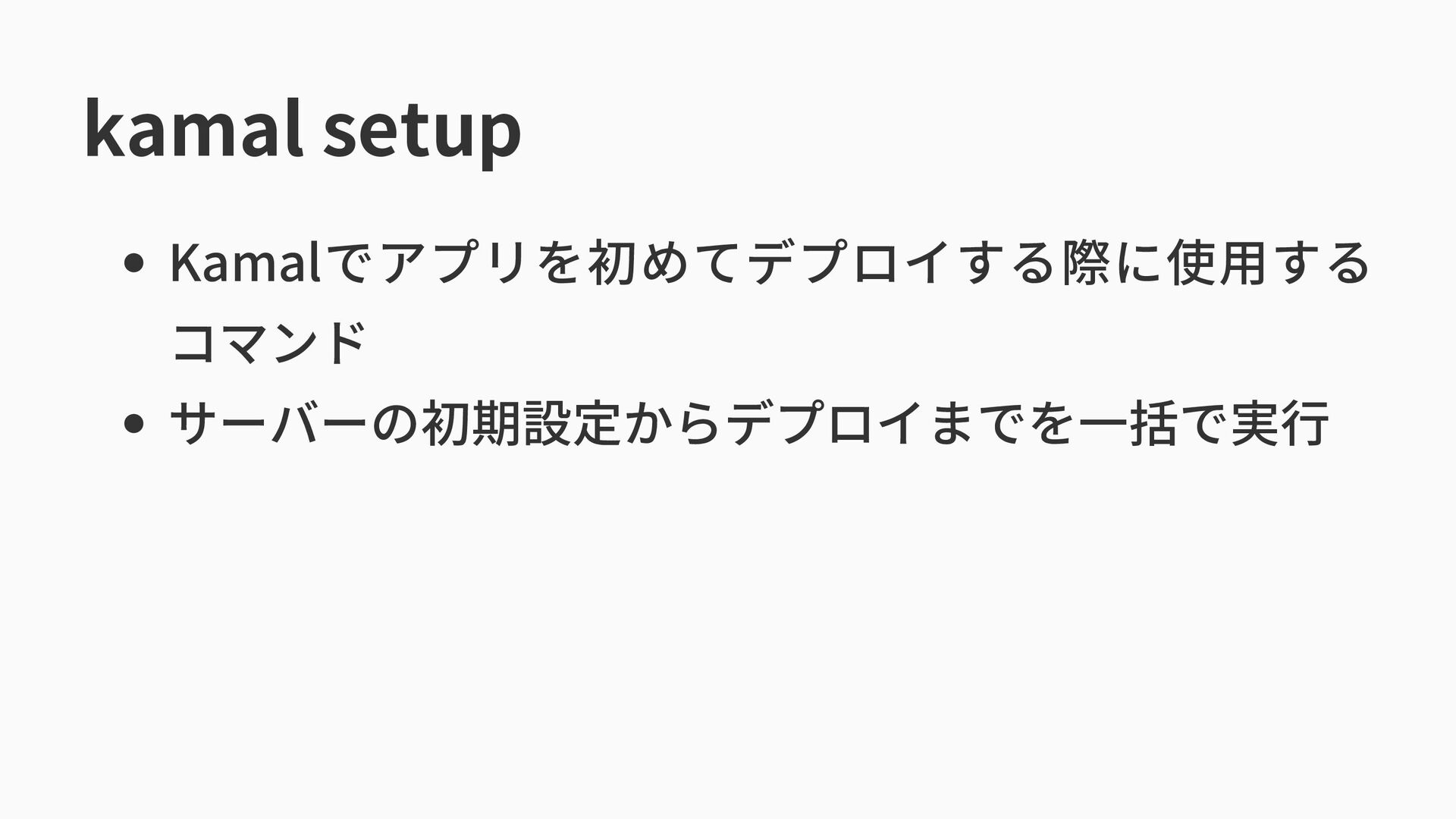 kamal setup Kamalでアプリを初めてデプロイする際に使用する コマンド サーバーの初期設定からデプロイまでを一括で実行