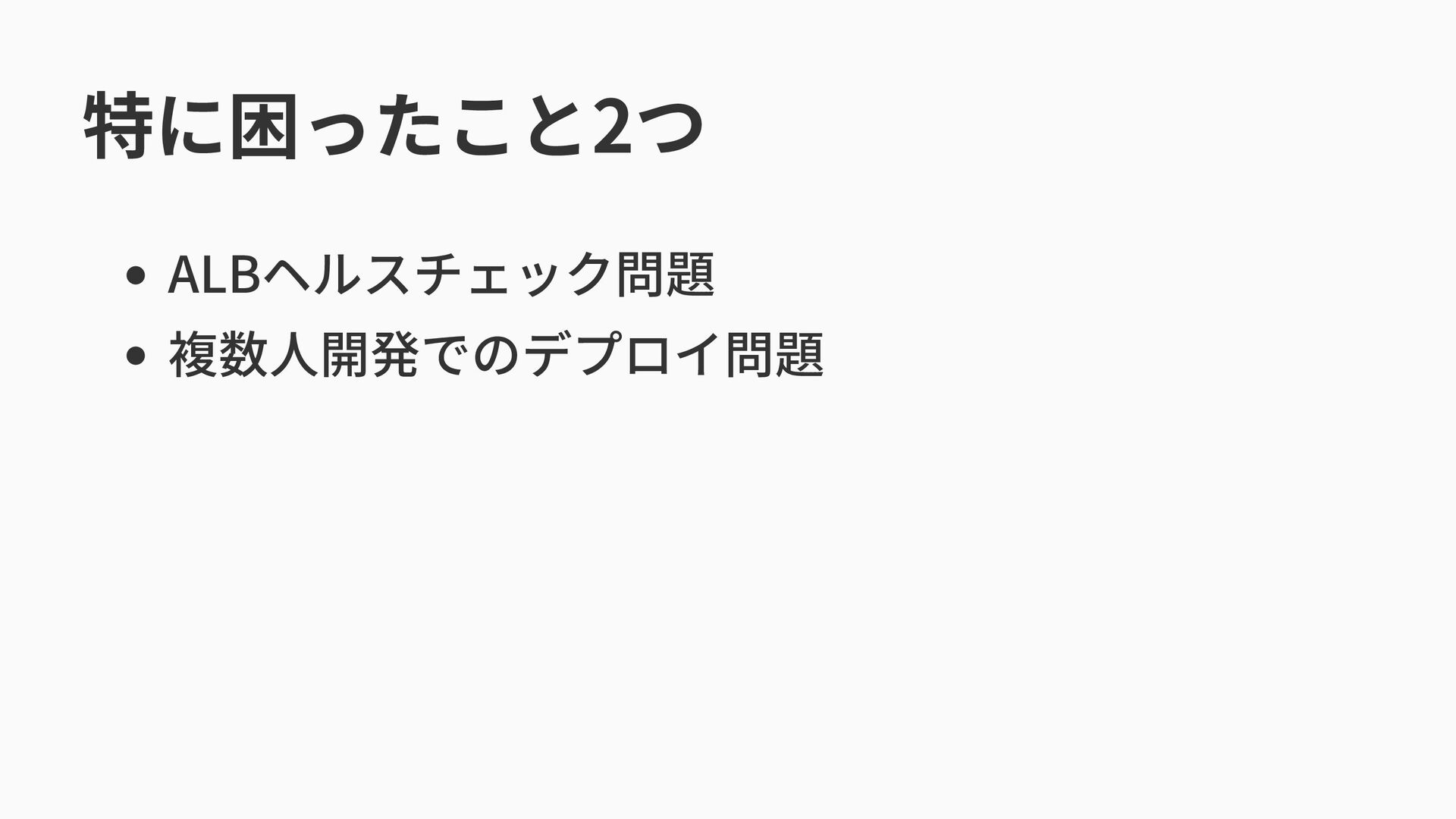 特に困ったこと2つ ALBヘルスチェック問題 複数人開発でのデプロイ問題