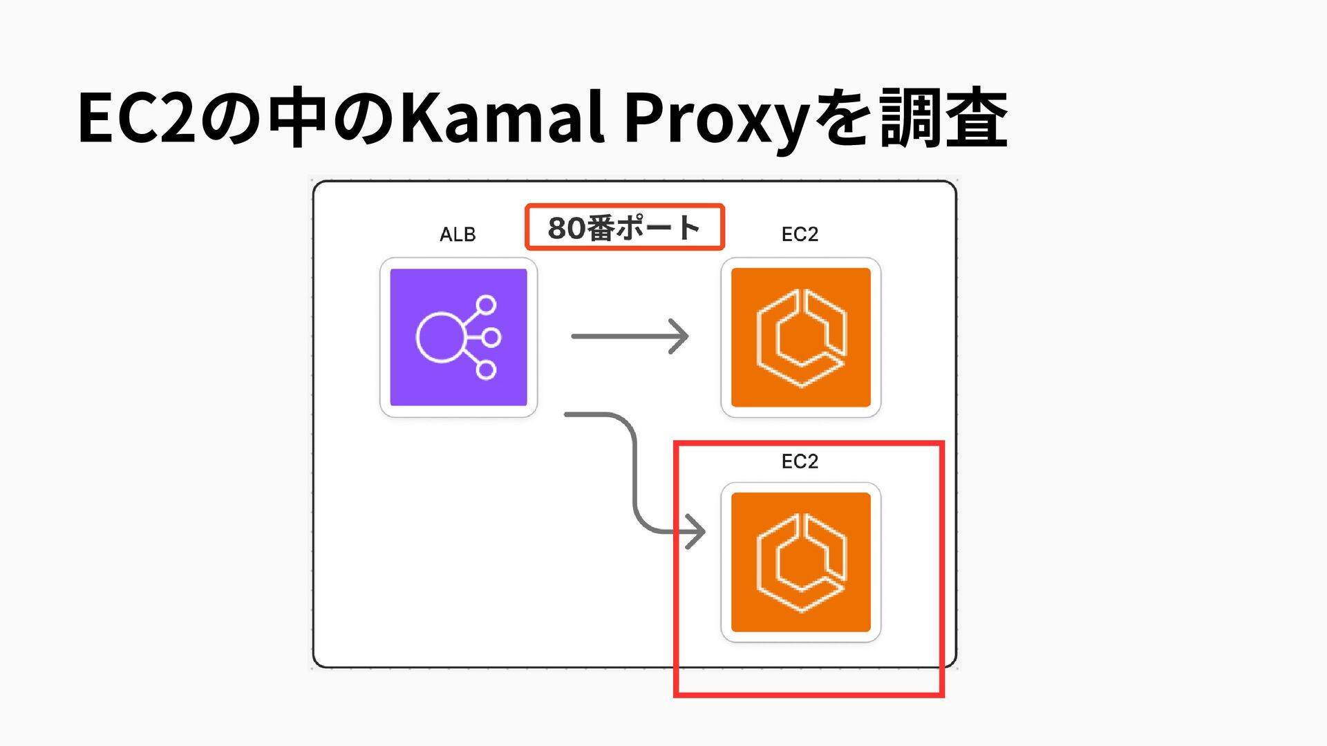 ALBのヘルスチェックは プライベートIPなので、Kamalが リクエストを振り分けできない