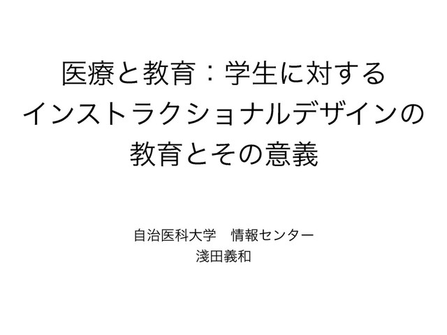 ҩྍͱڭҭɿֶੜʹର͢Δ ΠϯετϥΫγϣφϧσβΠϯͷ ڭҭͱͦͷҙٛ ࣏ࣗҩՊେֶɹใηϯλʔ ᕆాٛ