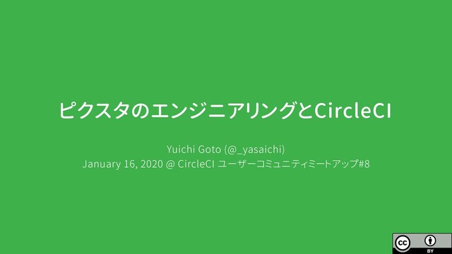 ピクスタのエンジニアリングとCircleCI Yuichi Goto (@_yasaichi) January 16, 2020 @ CircleCI ユーザーコミュニティミートアップ#8