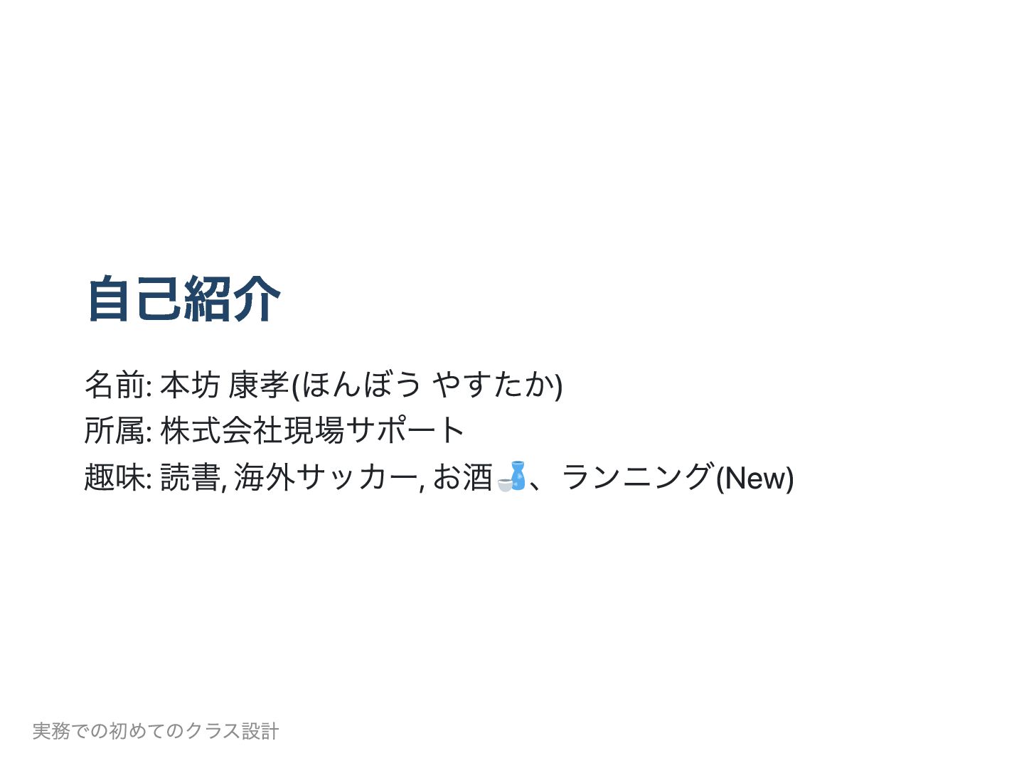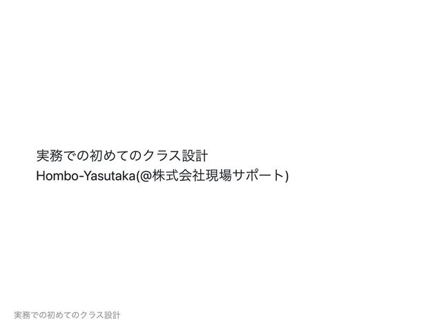 実務での初めてのクラス設計 Hombo-Yasutaka(@株式会社現場サポート) 実務での初めてのクラス設計