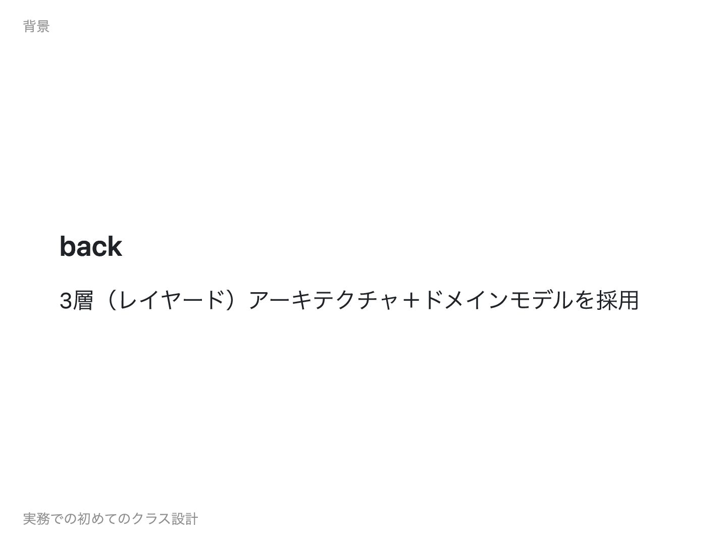 back 3層(レイヤード)アーキテクチャ+ドメインモデルを採用 背景 実務での初めてのクラス設計