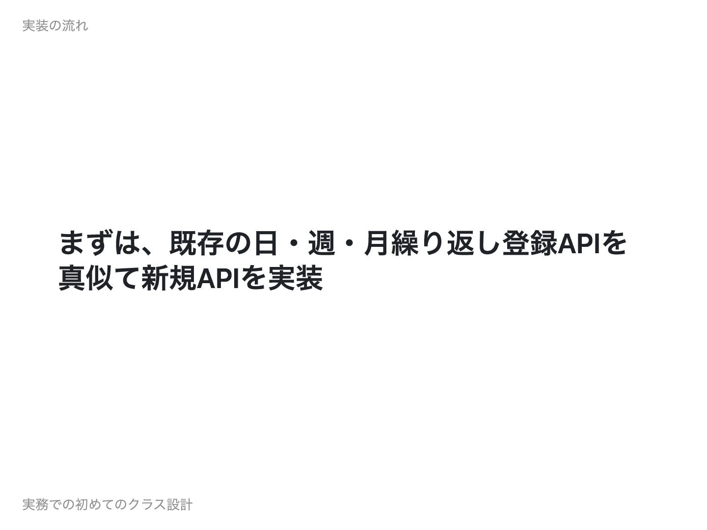 まずは、既存の日・週・月繰り返し登録APIを 真似て新規APIを実装 実装の流れ 実務での初めてのクラス設計