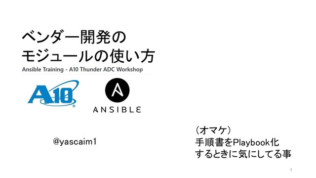1 ベンダー開発の モジュールの使い方 (オマケ) 手順書をPlaybook化 するときに気にしてる事 @yascaim1