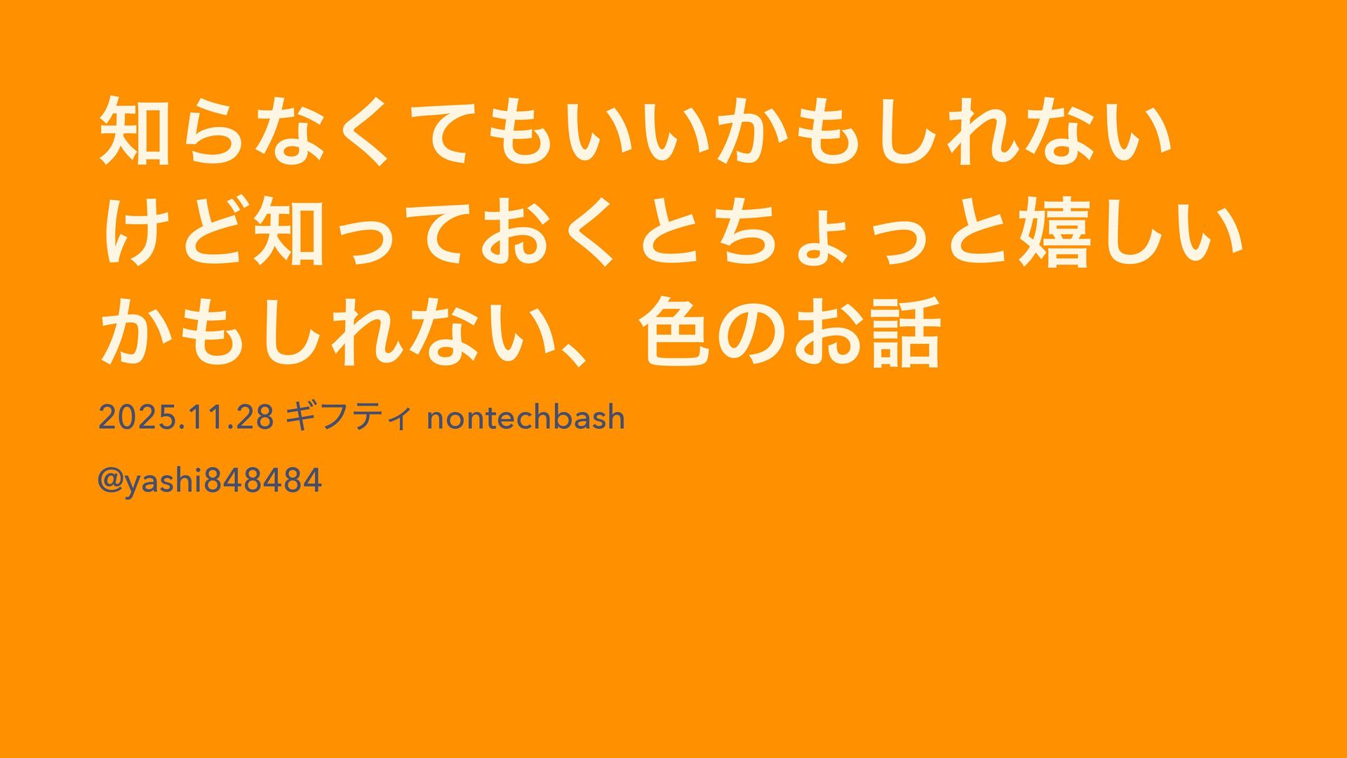Βͳ͍͍͔ͯ͘͠Εͳ͍ ͚Ͳ͓ͬͯ͘ͱͪΐͬͱخ͍͠ ͔͠Εͳ͍ɺ৭ͷ͓ 2025.11.28 ΪϑςΟ nontechbash @yashi848484