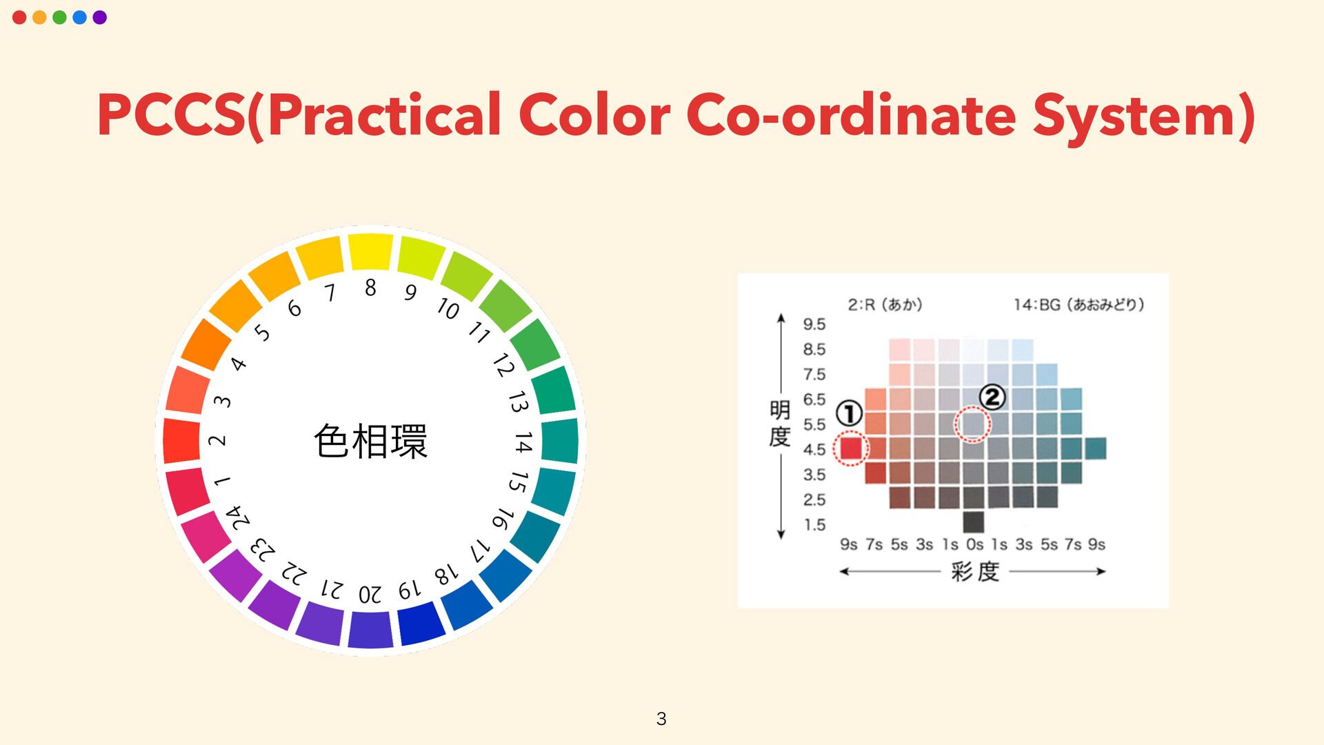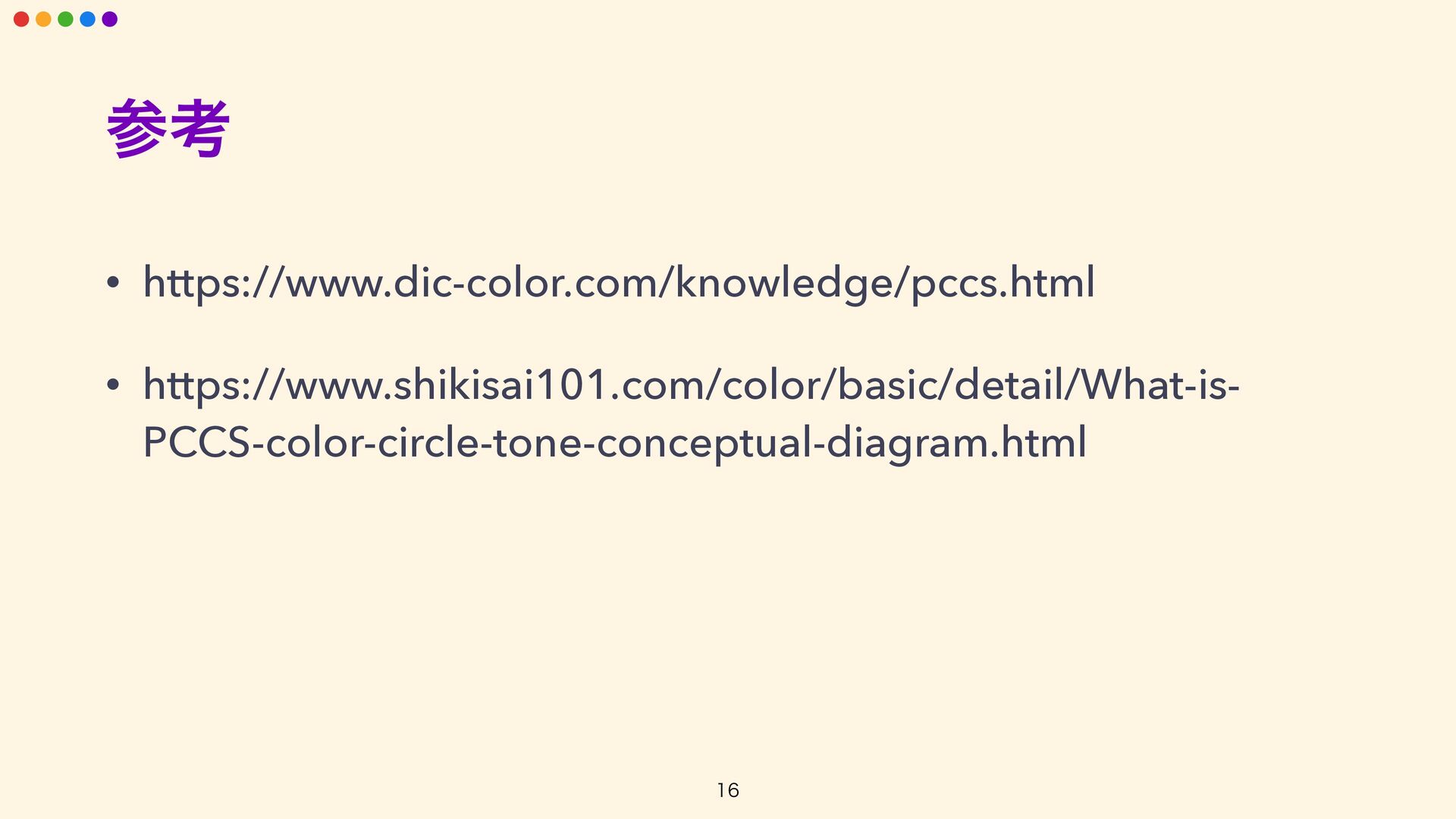 ࢀߟ • https://www.dic-color.com/knowledge/pccs.html • https://www.shikisai101.com/color/basic/detail/What-is- PCCS-color-circle-tone-conceptual-diagram.html