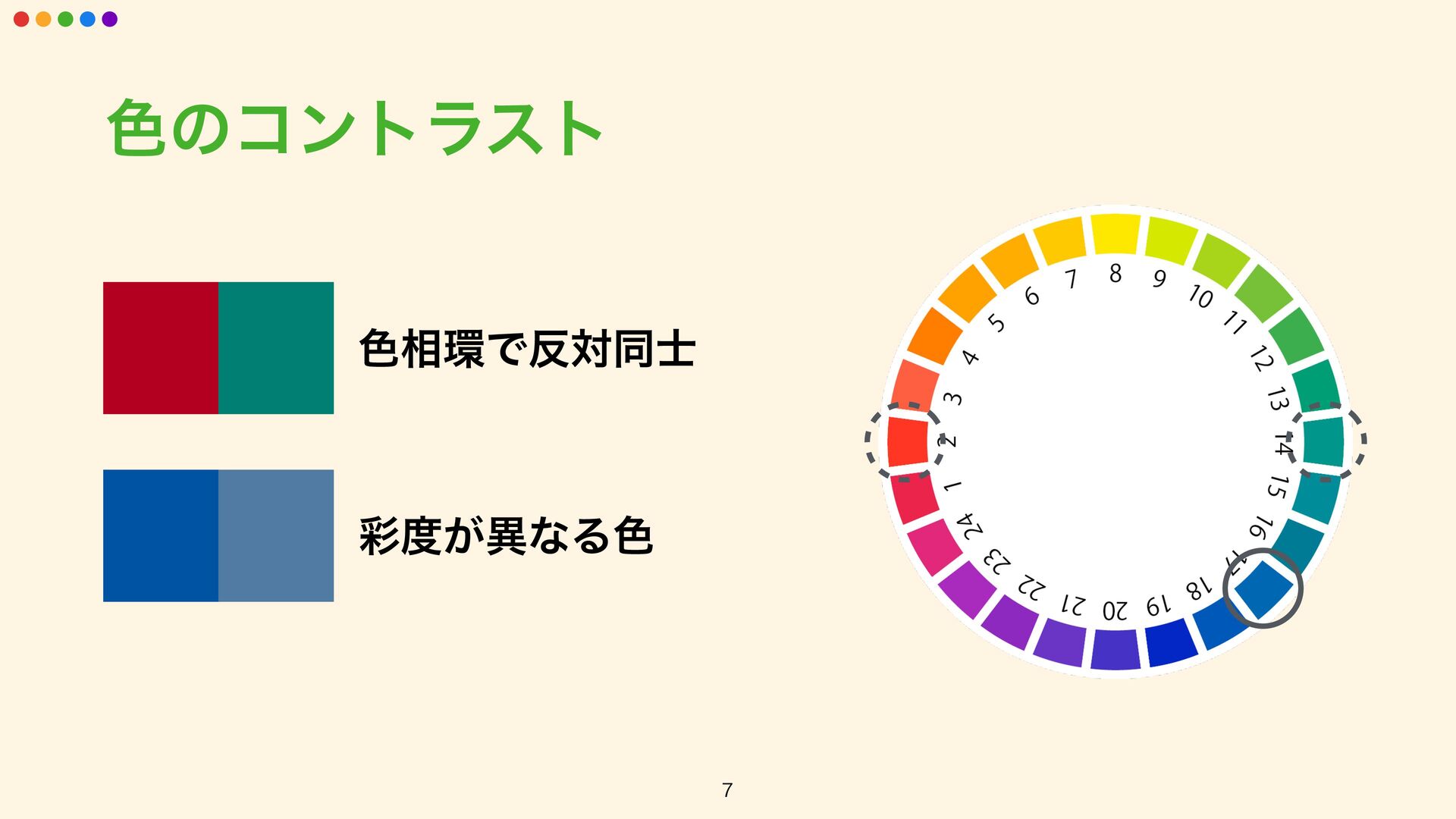 ৭ͷίϯτϥετ ৭૬Ͱରಉ࢜ ࠼͕ҟͳΔ৭