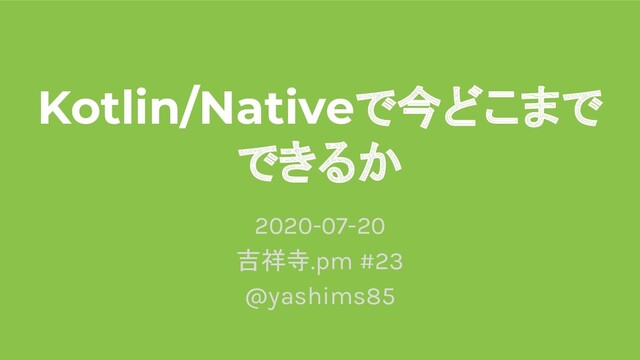 Kotlin/Nativeで今どこまで できるか 2020-07-20 吉祥寺.pm #23 @yashims85