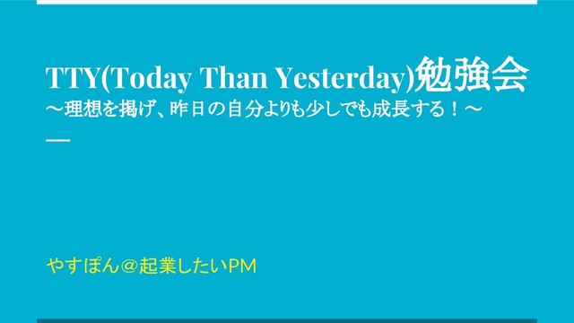 TTY(Today Than Yesterday)勉強会 ~理想を掲げ、昨日の自分よりも少しでも成長する!~ やすぽん@起業したいPM