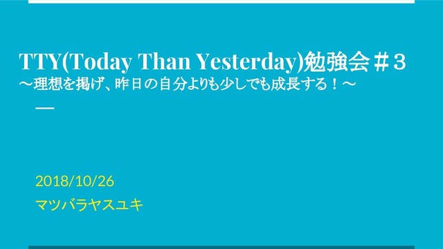 TTY(Today Than Yesterday)勉強会#3 ~理想を掲げ、昨日の自分よりも少しでも成長する!~ 2018/10/26 マツバラヤスユキ