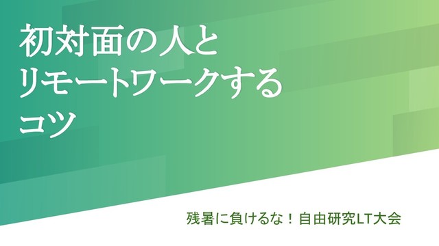 初対面の人と リモートワークする コツ 残暑に負けるな!自由研究LT大会