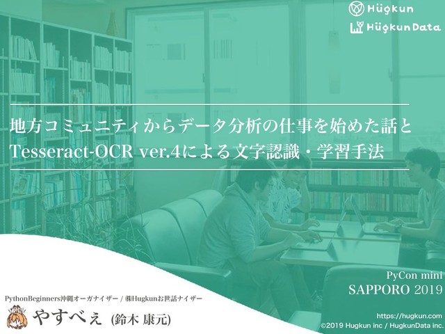 1.地方コミュニティからデータ分析のお仕事を始めた話 2.Tesseract-OCR ver.4による文字認識・学習手法 - 環境のセットアップ〜とりあえず文字認識まで - 推論(文字認識)をいろいろ試す - LSTMについて - 学習の方法(スクラッチ) - 学習の方法(Fine Tuning)