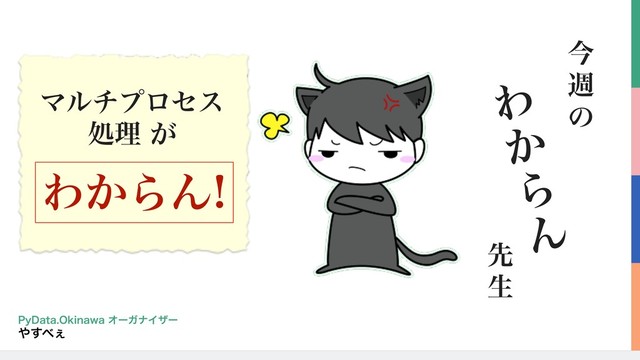 1. 対象者 2. 守ると良いルール 3. 集計処理をapply()で組んでおく 4. アウトプット先は分割しておく 5. 行単位の並列化はdaskを使う 6. 大きな単位の並列化はjoblibを使う 7. デモ(時間があれば) 8. まとめ