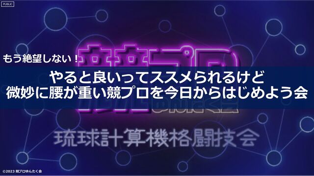 PUBLIC ©2023 競プロゆんたく会 PUBLIC というわけで やると良いって ススメられるけど 微妙に腰が重い競プロを 今⽇から始めよう会