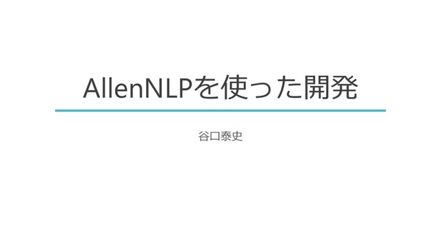 = get_text_field_mask(tokens).float() encoded_text = self._dropout( self._seq2vec_encoder(embedded_text, mask=mask) ) logits = self._classification_layer(encoded_text) probs = F.softmax(logits, dim=1) loss = self._loss(logits, label.long().view(-1)) return {“loss”: loss} • ⼊⼒からロスを計算 • dict形式で値を返却