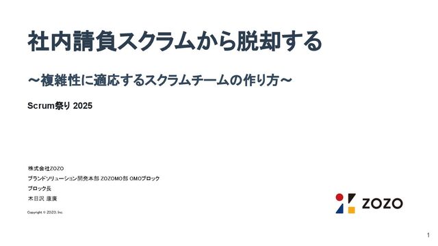 社内請負スクラムから脱却する 〜複雑性に適応するスクラムチームの作り方 〜 Scrum祭り 2025 株式会社ZOZO ブランドソリューション開発本部 ZOZOMO部 OMOブロック ブロック長