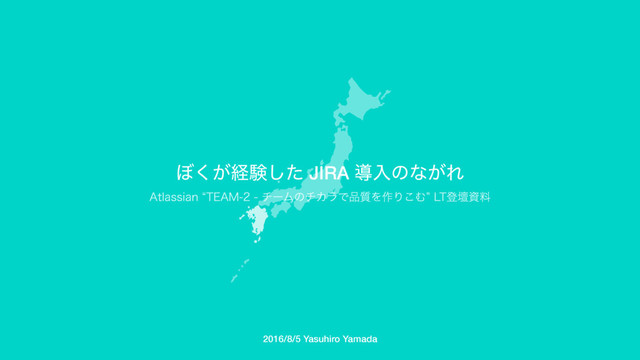Atlassianさまと九州ソフトウェアテスト勉強会さまの共催で、2016/8/6 に福岡にて開催された “TEAM-2 - チームのチカラで品質を作りこむ” で LT 登壇した際の資料です。 Atlassian Tools (主にJIRA) 導入のときに やったこと・起こったこと・その結果を共有することでこれから JIRA を導入する方の参考になったり、 励ますことができればすごく嬉しいです。