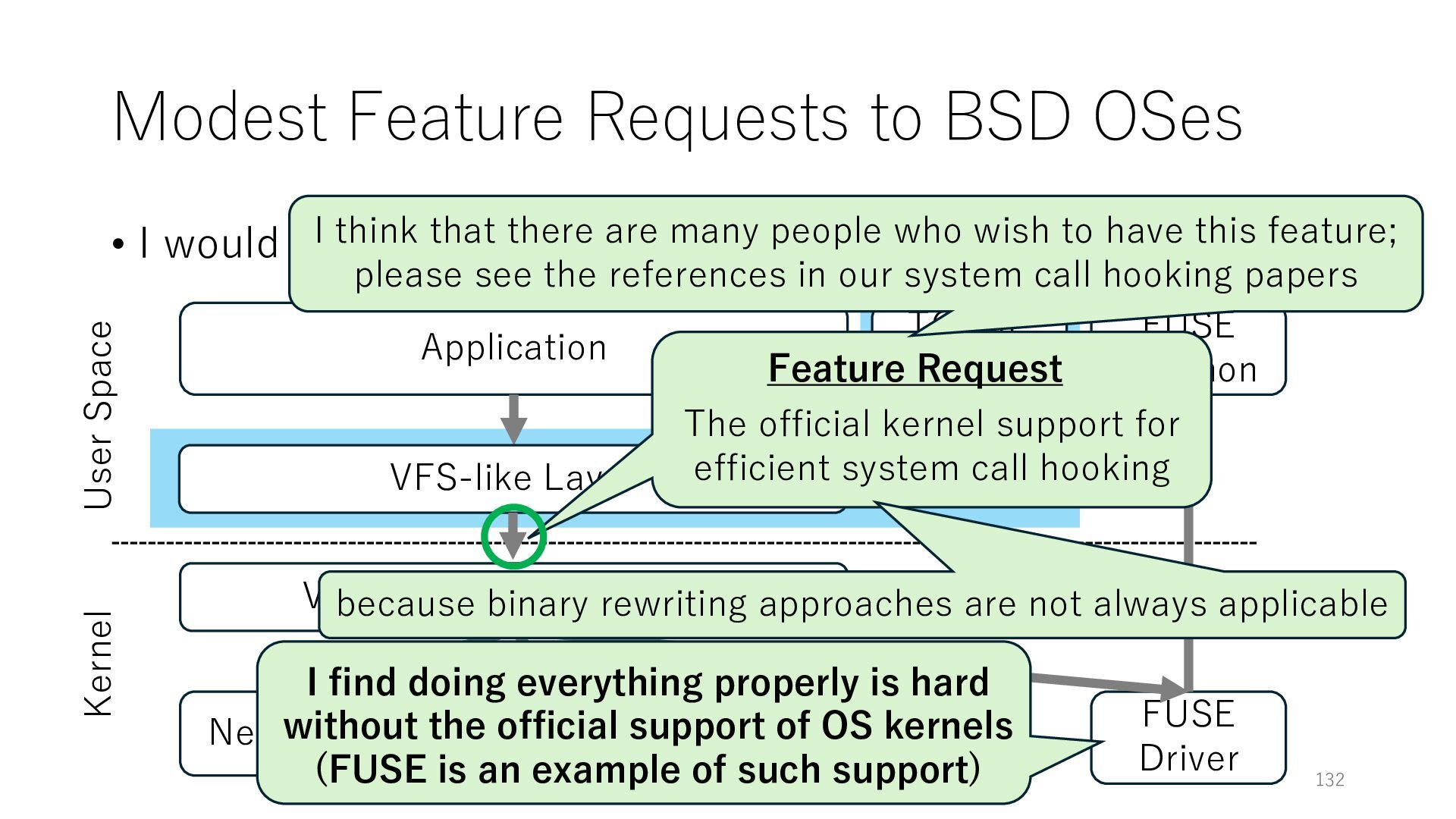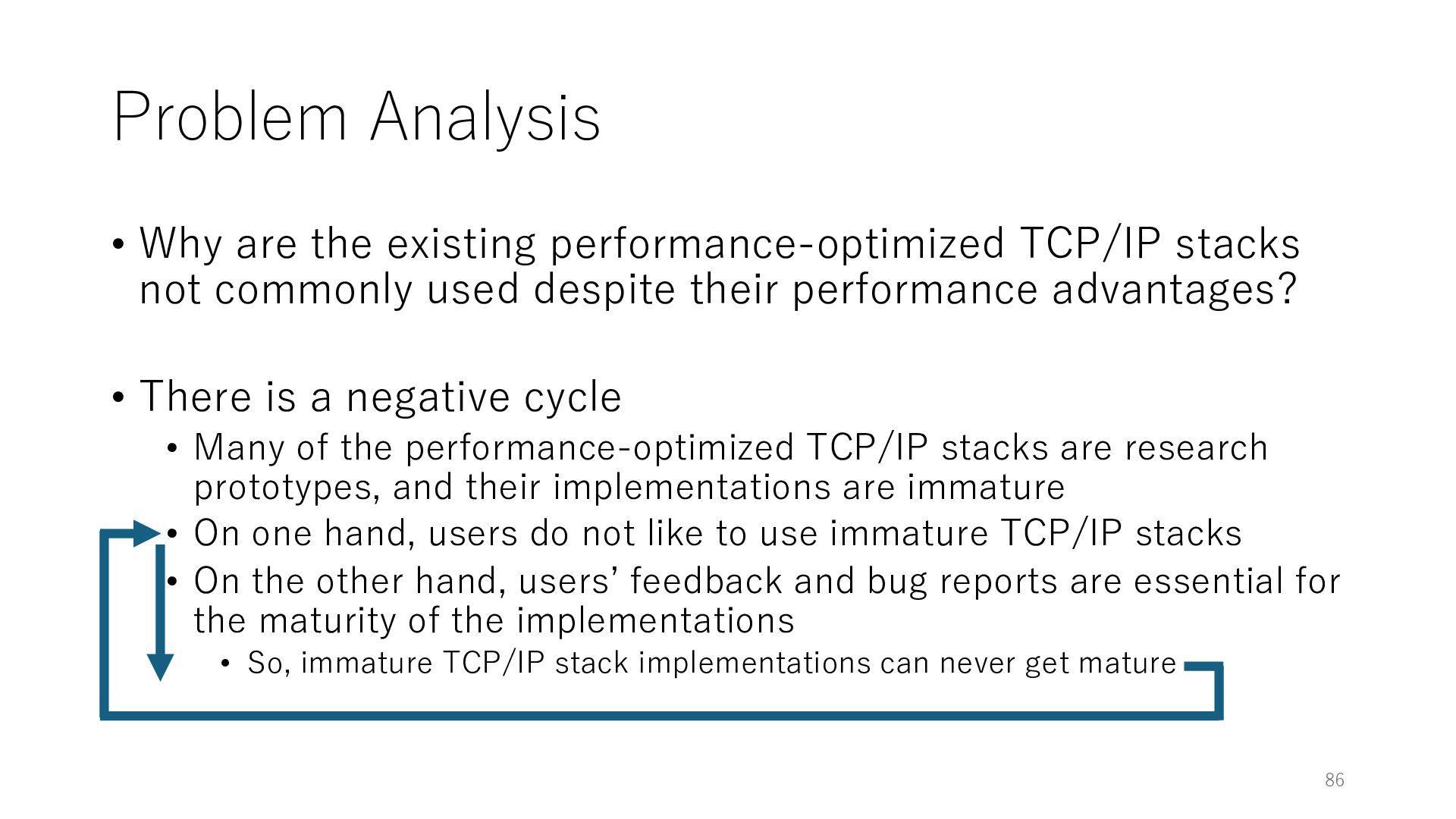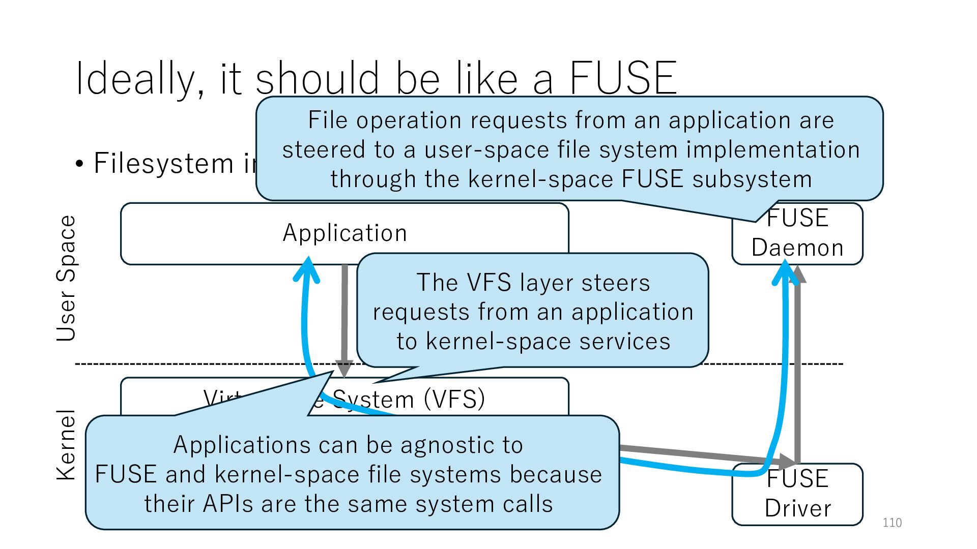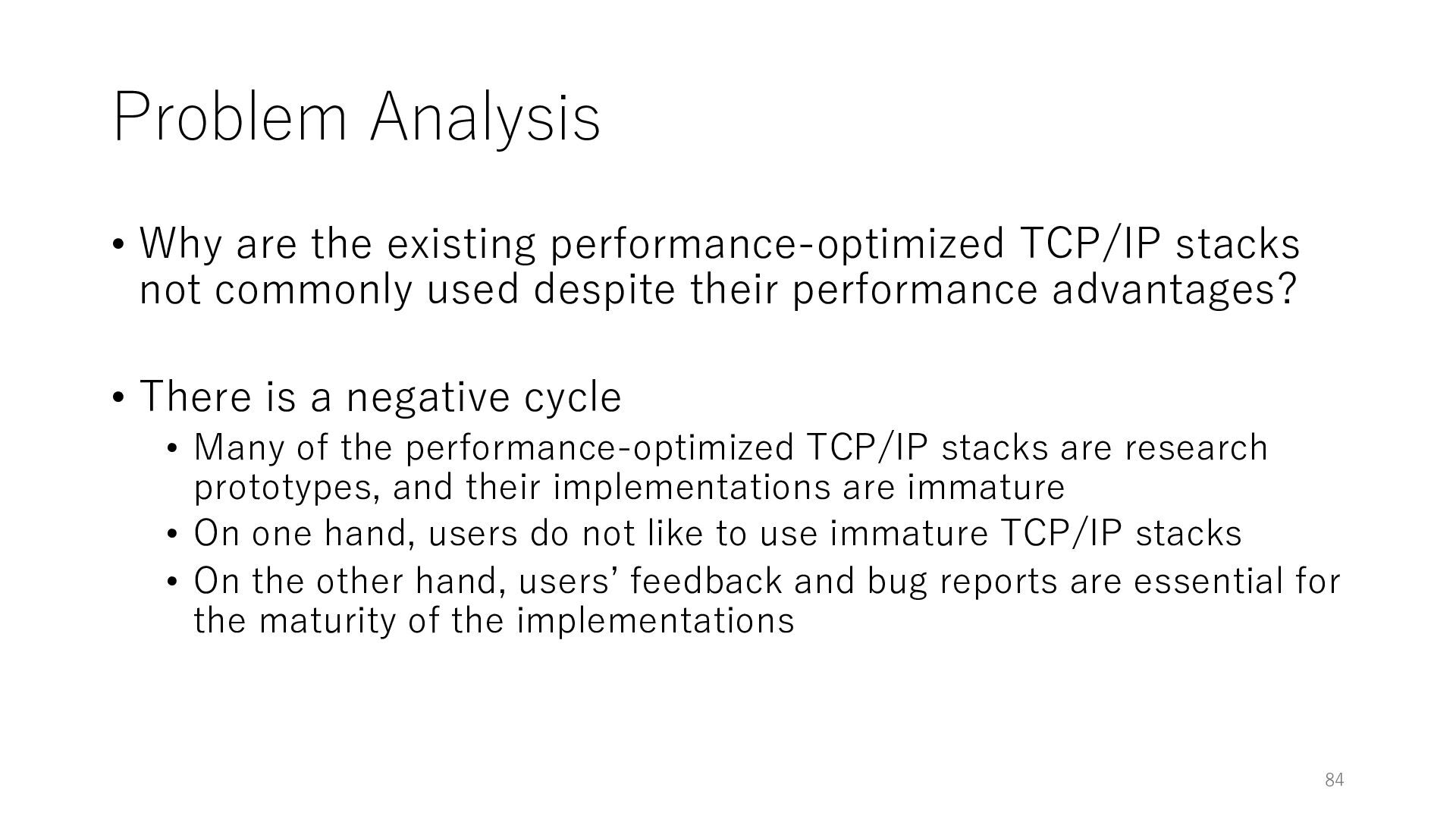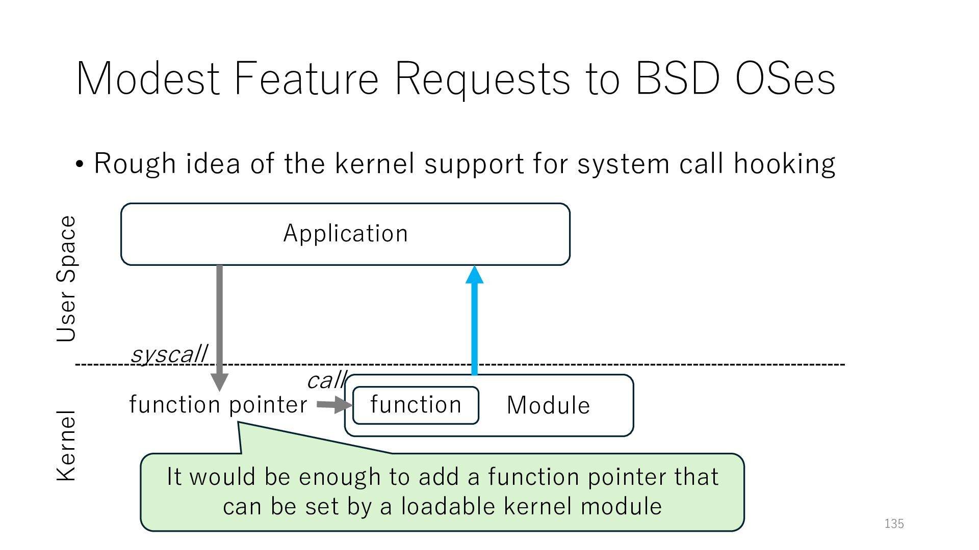 merged in FreeBSD • The speed of packet transmission over a raw socket is 1.05 Mpps • Mpps: million packets per second • netmap achieves the line rate (14.88 Mpps) with one CPU core application costs almost negligible: a packet generator which streams pre-generated packets, and a packet re- ceiver which just counts incoming packets. 5.2 Test equipment We have run most of our experiments on systems equipped with an i7-870 4-core CPU at 2.93 GHz (3.2 GHz with turbo-boost), memory running at 1.33 GHz, and a dual port 10 Gbit/s card based on the Intel 82599 NIC. The numbers reported in this paper refer to the netmap version in FreeBSD HEAD/amd64 as of April 2012. Experiments have been run using di- rectly connected cards on two similar systems. Results are highly repeatable (within 2% or less) so we do not report confidence intervals in the tables and graphs. netmap is extremely efficient so it saturates a 10 Gbit/s interface even at the maximum packet rate, and we need to run the system at reduced clock speeds to determine 0 2 4 6 8 10 12 14 16 0 0.5 1 1.5 2 2.5 3 Tx Rate (Mpps) Clock speed (GHz) netmap on 4 cores netmap on 2 cores netmap on 1 core Linux/pktgen FreeBSD/netsend Figure 5: Netmap transmit performance with 64-byte packets, variable clock rates and number of cores, com- pared to pktgen (a specialised, in-kernel generator avail- able on linux, peaking at about 4 Mpps) and a netsend (FreeBSD userspace, peaking at 1.05 Mpps). 63 Luigi Rizzo, “netmap: a novel framework for fast packet I/O”, USENIX ATC 2012 https://www.usenix.org/conference/atc12/technical-sessions/presentation/rizzo