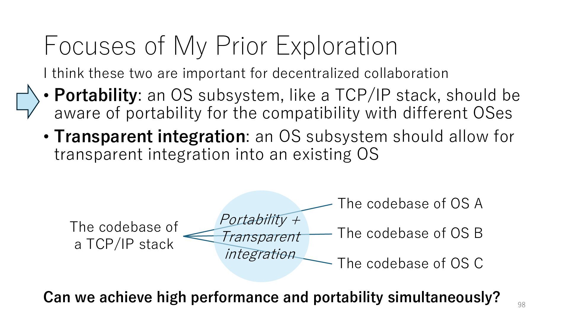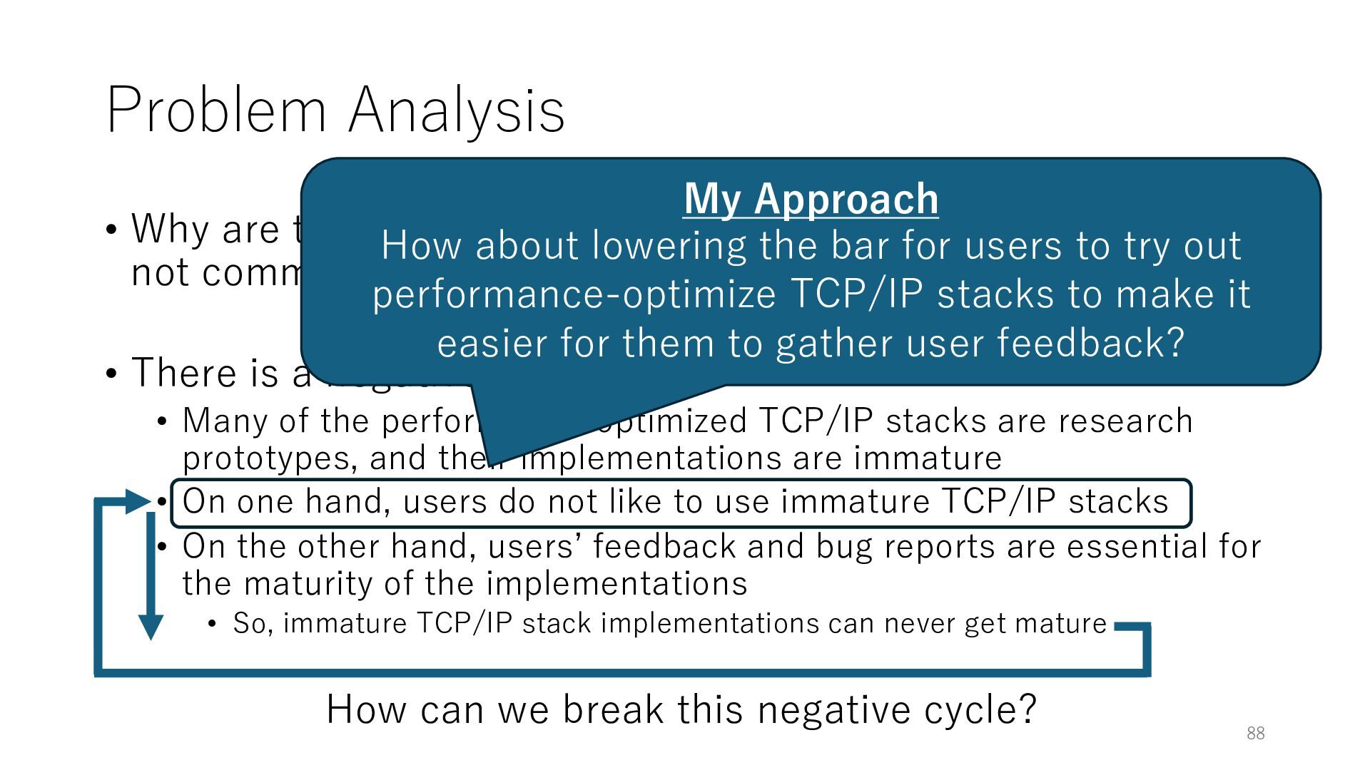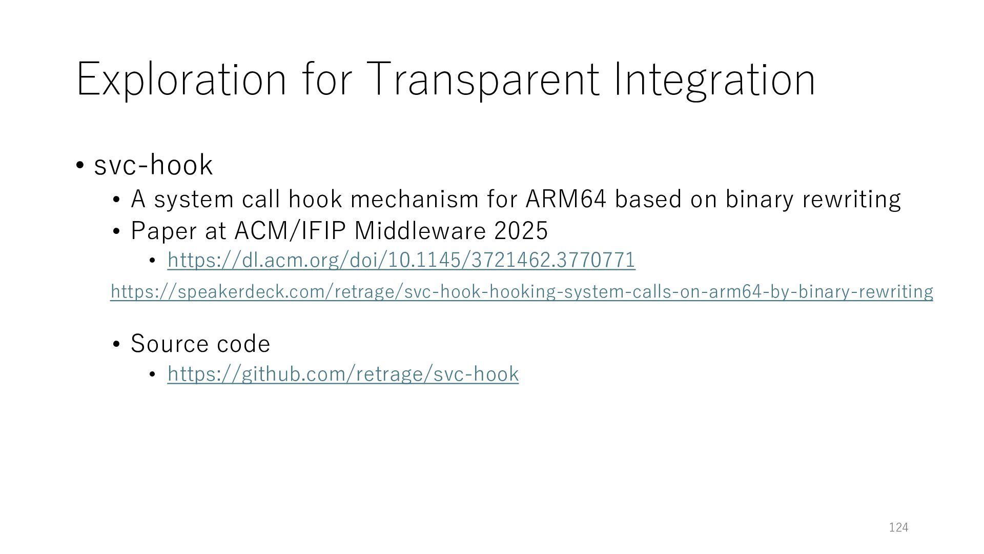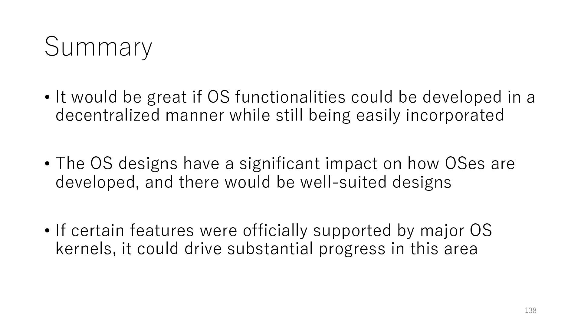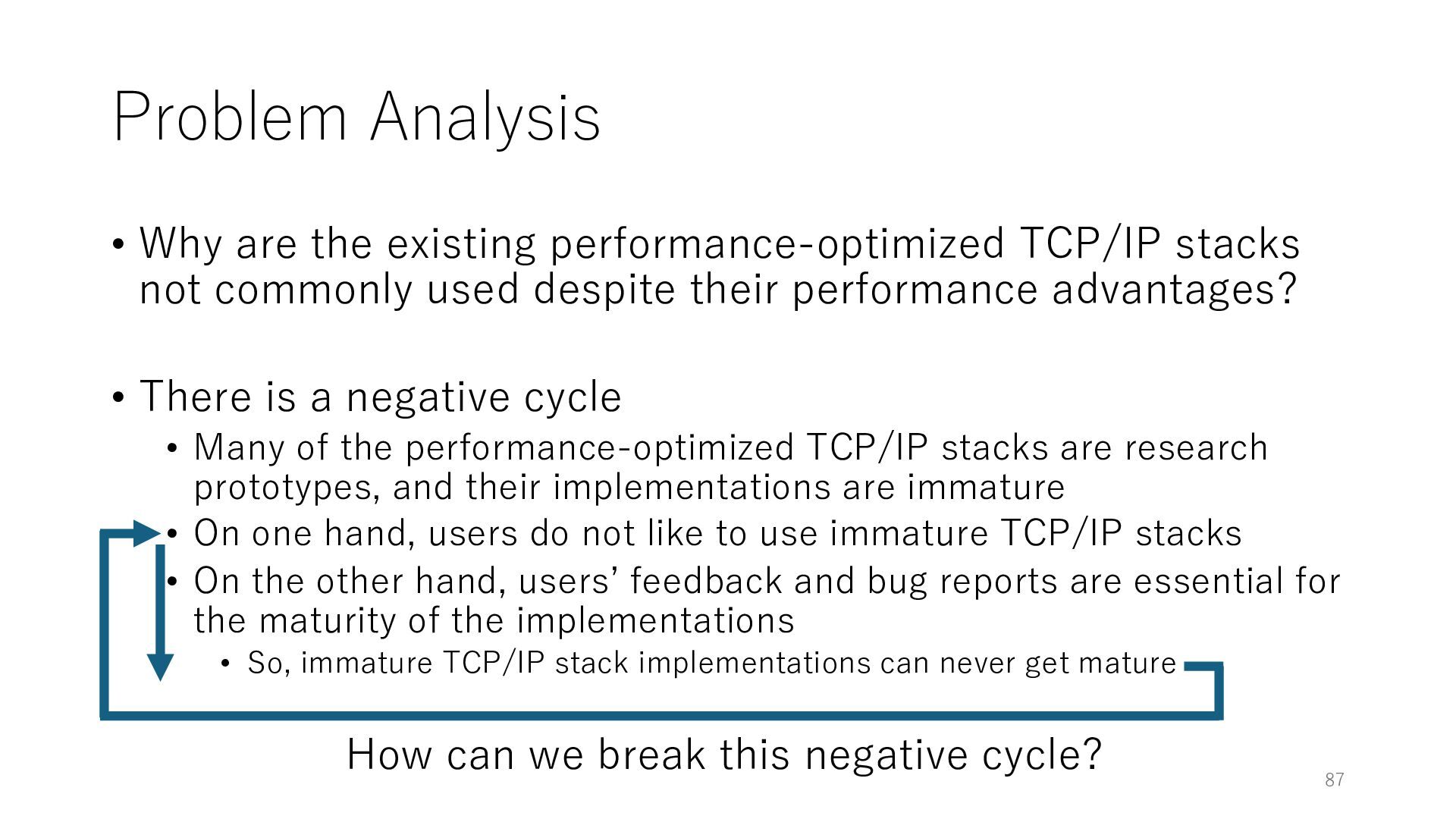 merged in FreeBSD • The speed of packet transmission over a raw socket is 1.05 Mpps • Mpps: million packets per second • netmap achieves the line rate (14.88 Mpps) with one CPU core application costs almost negligible: a packet generator which streams pre-generated packets, and a packet re- ceiver which just counts incoming packets. 5.2 Test equipment We have run most of our experiments on systems equipped with an i7-870 4-core CPU at 2.93 GHz (3.2 GHz with turbo-boost), memory running at 1.33 GHz, and a dual port 10 Gbit/s card based on the Intel 82599 NIC. The numbers reported in this paper refer to the netmap version in FreeBSD HEAD/amd64 as of April 2012. Experiments have been run using di- rectly connected cards on two similar systems. Results are highly repeatable (within 2% or less) so we do not report confidence intervals in the tables and graphs. netmap is extremely efficient so it saturates a 10 Gbit/s interface even at the maximum packet rate, and we need to run the system at reduced clock speeds to determine 0 2 4 6 8 10 12 14 16 0 0.5 1 1.5 2 2.5 3 Tx Rate (Mpps) Clock speed (GHz) netmap on 4 cores netmap on 2 cores netmap on 1 core Linux/pktgen FreeBSD/netsend Figure 5: Netmap transmit performance with 64-byte packets, variable clock rates and number of cores, com- pared to pktgen (a specialised, in-kernel generator avail- able on linux, peaking at about 4 Mpps) and a netsend (FreeBSD userspace, peaking at 1.05 Mpps). 63 Luigi Rizzo, “netmap: a novel framework for fast packet I/O”, USENIX ATC 2012 https://www.usenix.org/conference/atc12/technical-sessions/presentation/rizzo