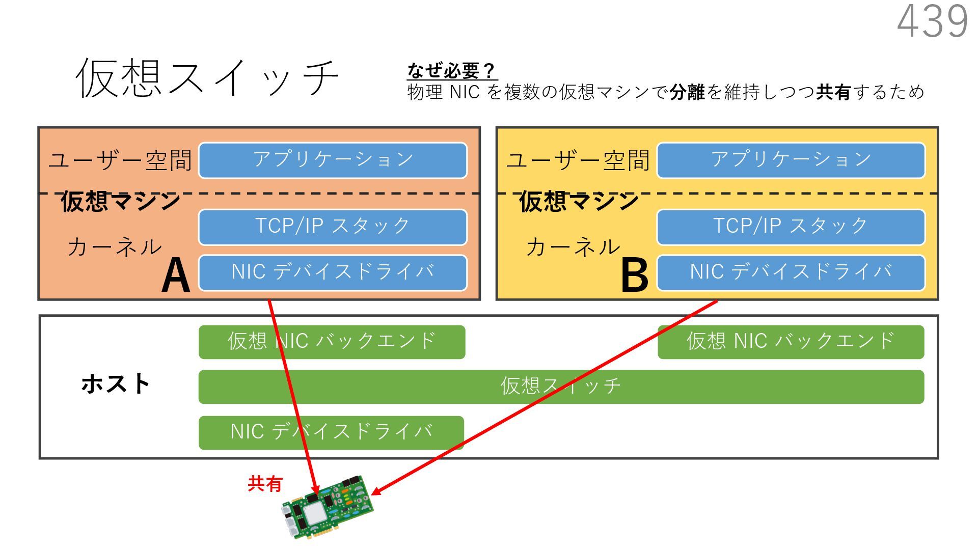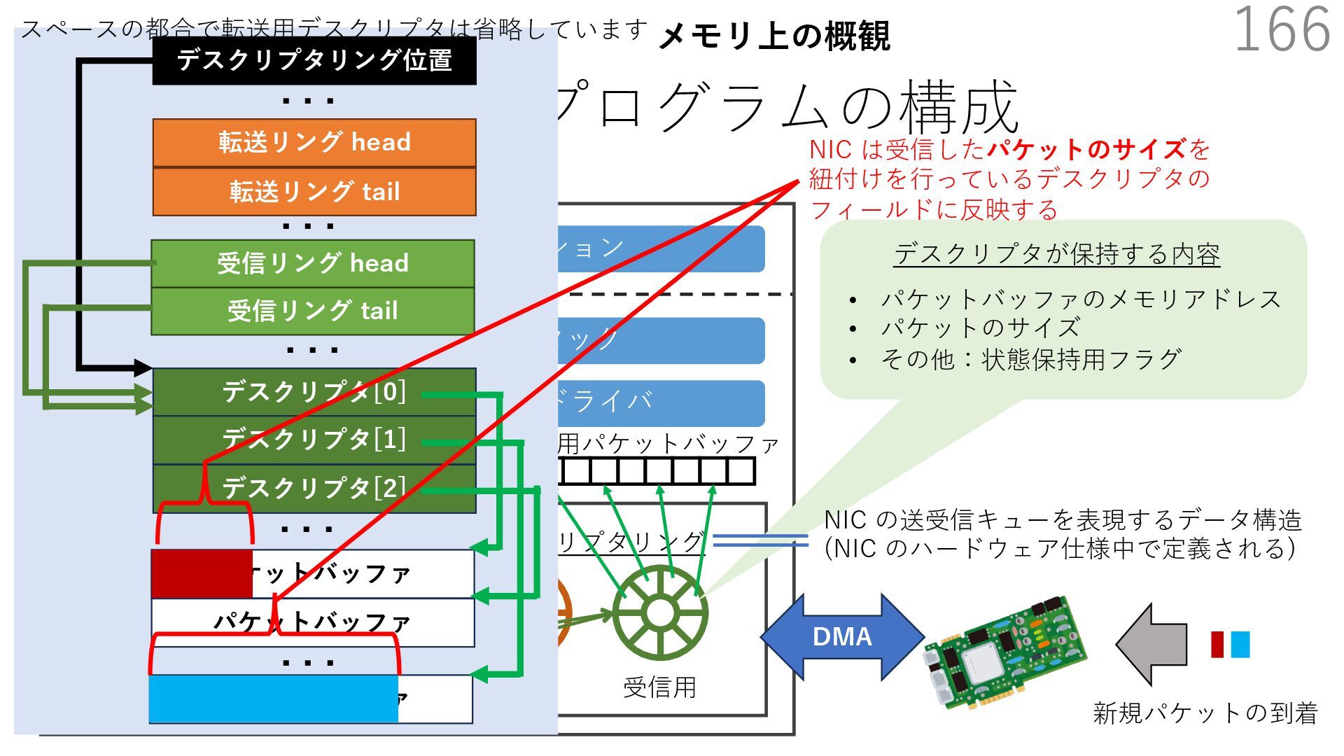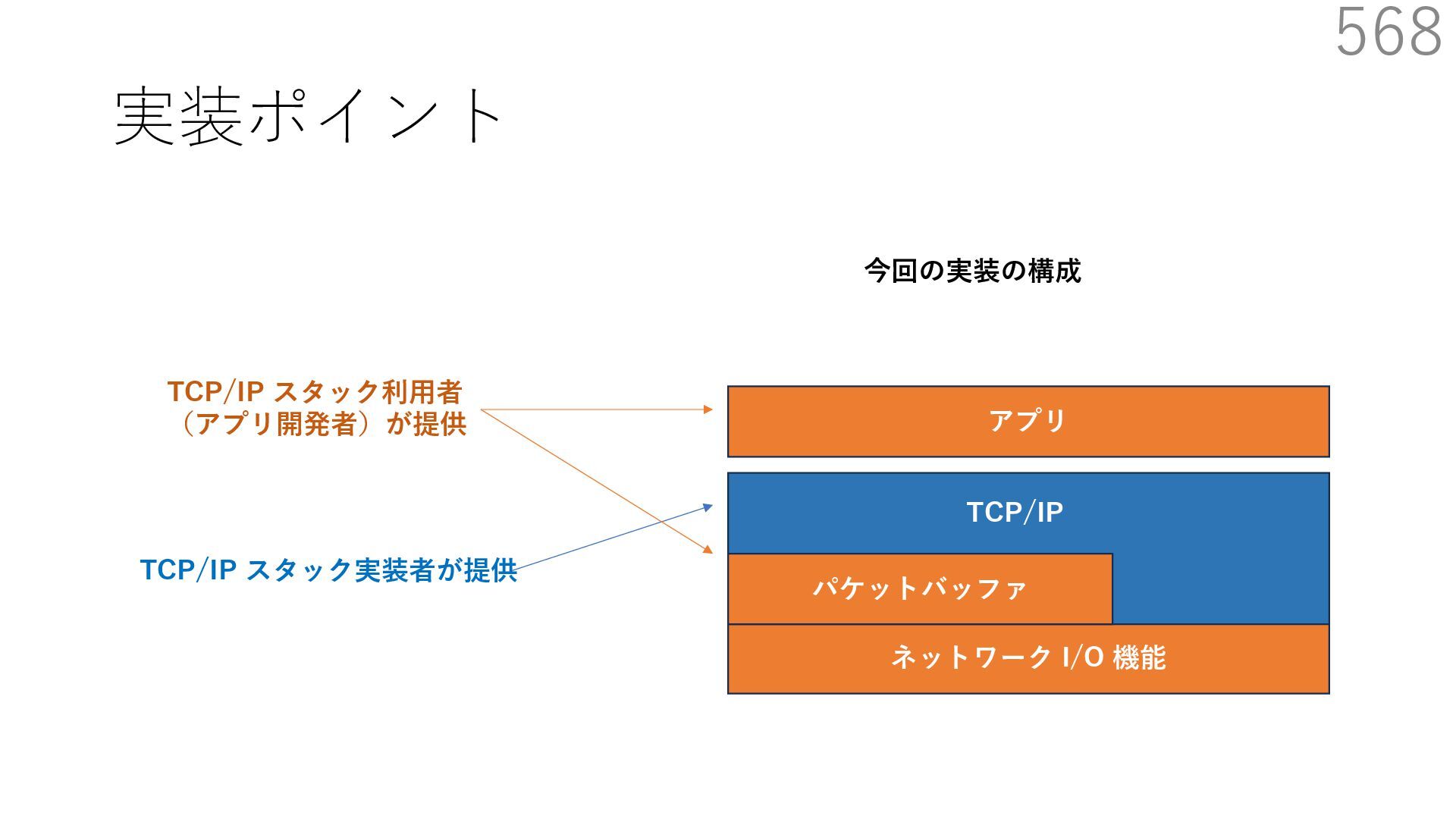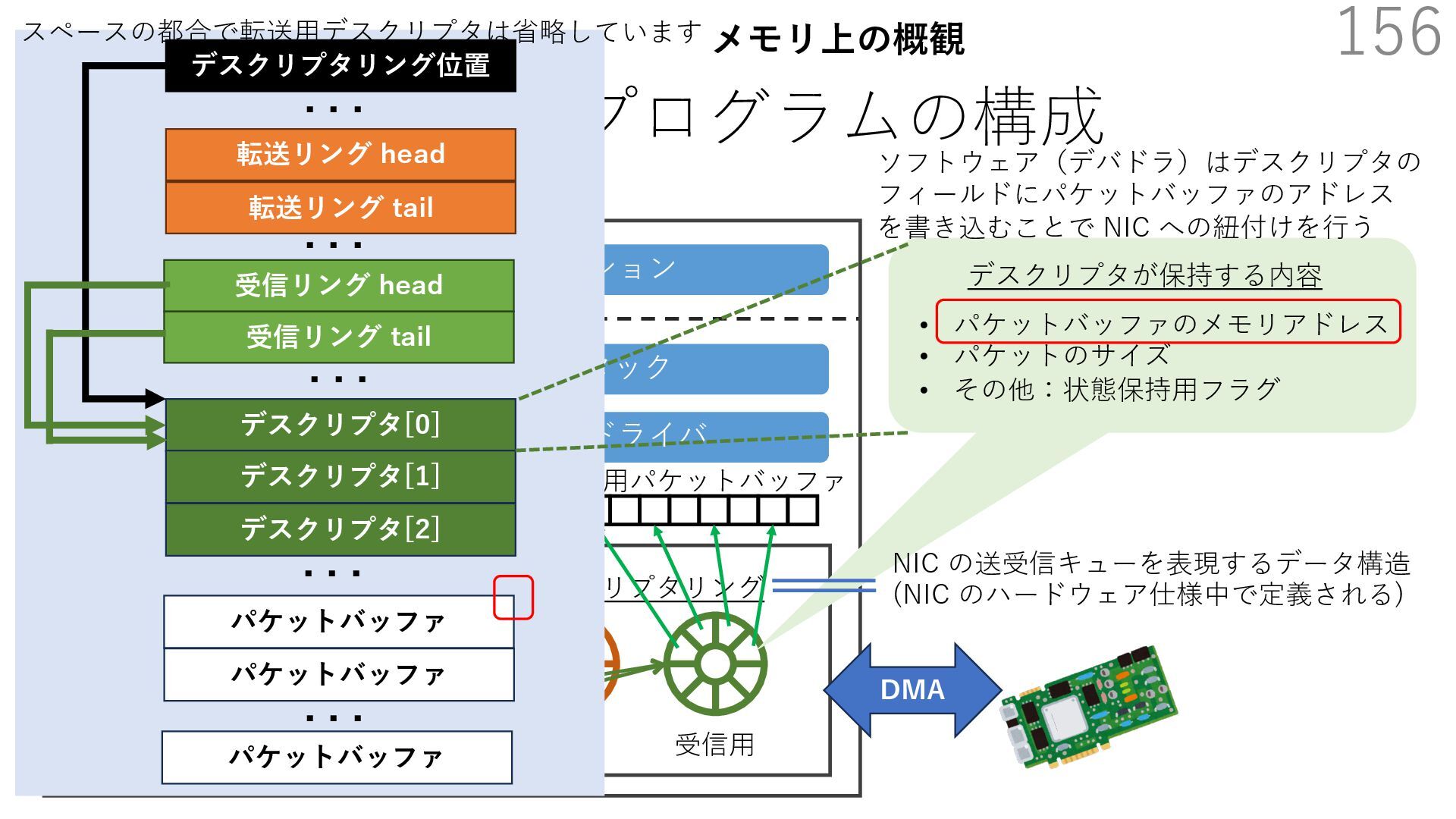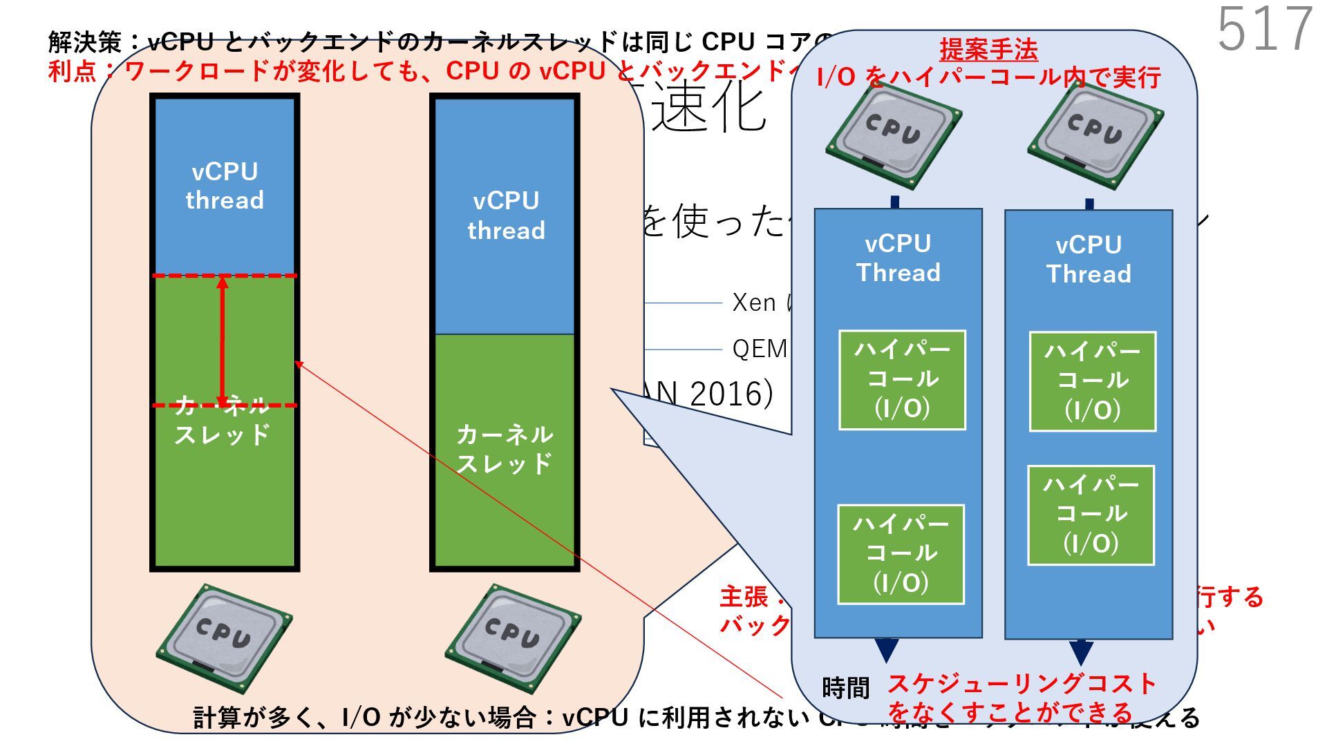 (SIGCOMM 2014) • mTCP (NSDI 2014) • Arrakis (OSDI 2014) • IX (OSDI 2014) • StackMap (USENIX ATC 2016) • Atlas (SIGCOMM 2017) • ZygOS (SOSP 2017) • Shenango (NSDI 2019) • Shinjuku (NSDI 2019) • TAS (EuroSys 2019) • Caladan (OSDI 2020) • Demikernel (SOSP 2021) 427 into a single library for both devices (e.g., RDMAxSPDK). We implemented the bulk of our library OS code in Rust. We initially prototyped several libOSes in C++; however, we found that Rust performs competitively with C++ and achieves ns-scale latencies while offering additional benefits. First, Rust enforces memory safety through language fea- tures and its compiler. Though our libOSes use unsafe code to bind to C/C++ kernel-bypass libraries and applications, User-space Software Kernel-space Software I/O Hardware I/O Device ??? libFuture ??? DPDK User I/O Buf. Mgmt libRDMA RDMA User I/O Buf. Mgmt Net. Trans. OS Kernel Control Path Demikernel Datapath Architecture App libPOSIX libDPDK SPDK User I/O Buf. Mgmt libSPDK Future Demikernel PDPIX Datapath API Figure 3. Demikernel kernel-bypass architecture. Demikernel ac- commodates heterogenous kernel-bypass devices, including poten- tial future hardware, with a flexible library OS-based datapath ar- chitecture.We include a libOS that goes through the OS kernel for 提案:異なるタイプのデバイスへ 共通のインターフェースからアクセス可能にする Irene Zhang, Amanda Raybuck, Pratyush Patel, Kirk Olynyk, Jacob Nelson, Omar S. Navarro Leija, Ashlie Martinez, Jing Liu, Anna Kornfeld Simpson, Sujay Jayakar, Pedro Henrique Penna, Max Demoulin, Piali Choudhury, and Anirudh Badam. 2021. The Demikernel Datapath OS Architecture for Microsecond-Scale Datacenter Systems. In Proceedings of the ACM Sigops 28th Symposium on Operating Systems Principles (SOSP ʼ21), 195-211.(https://doi.org/10.1145/3477132.3483569)