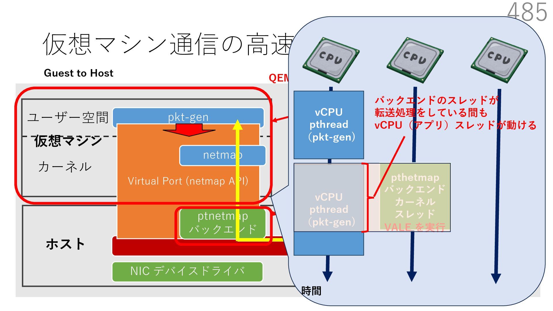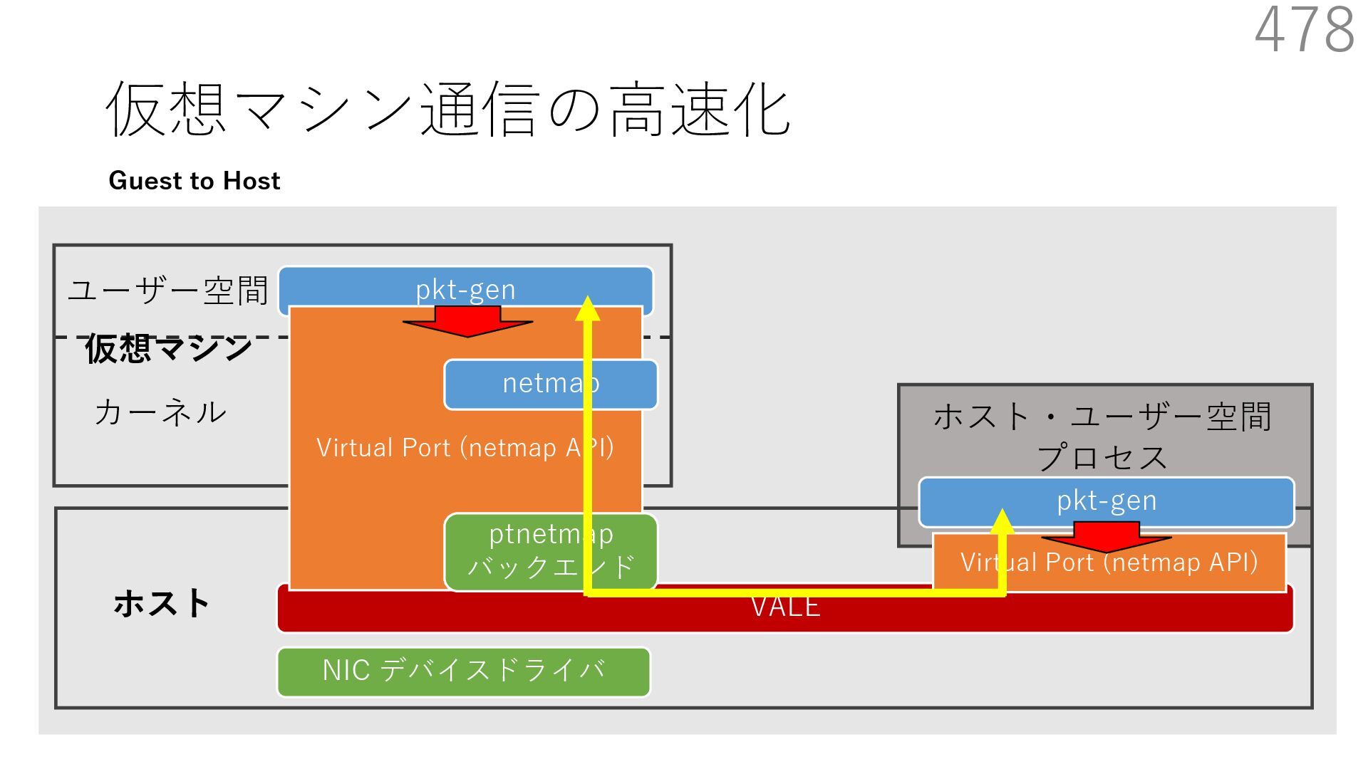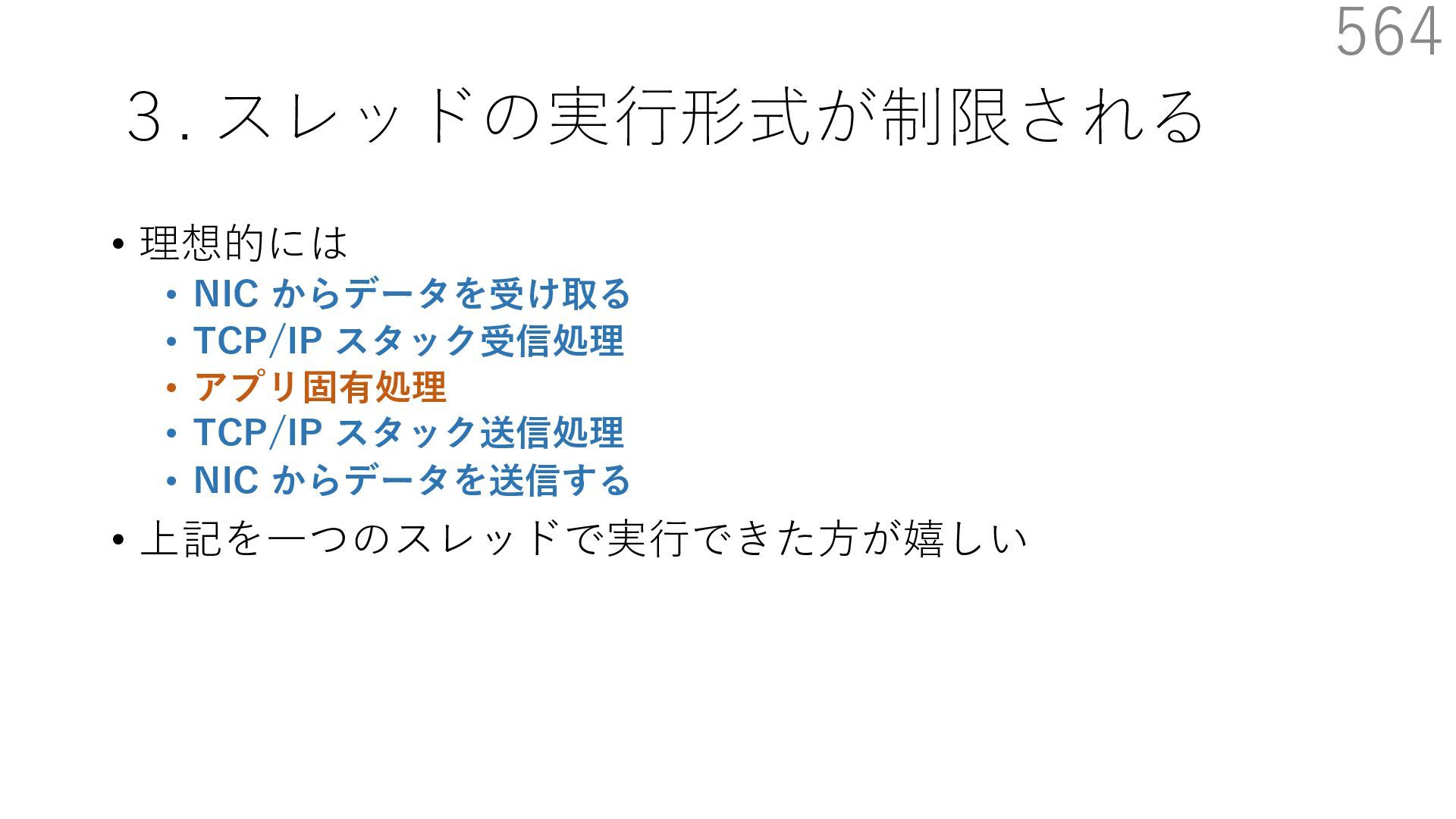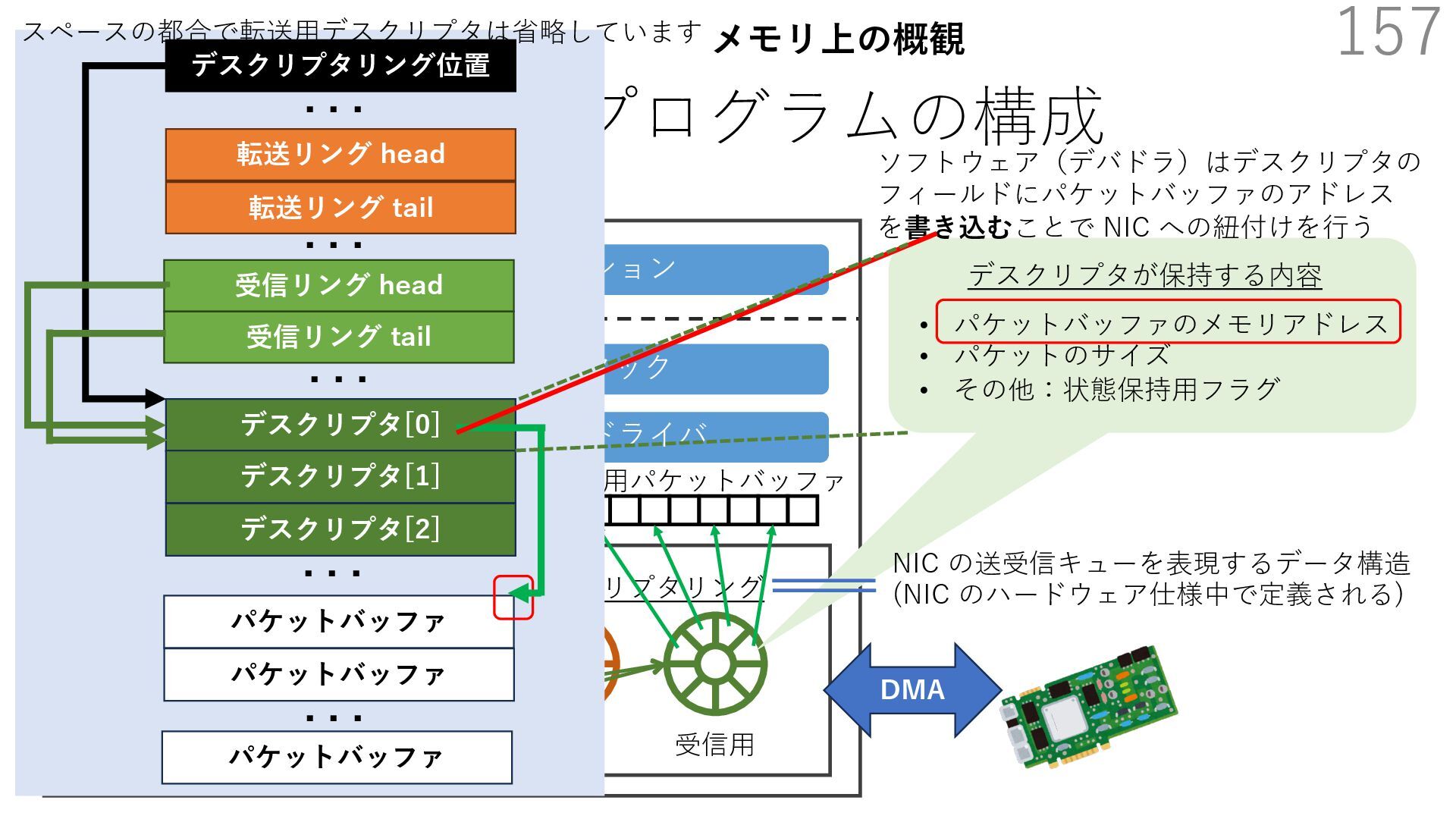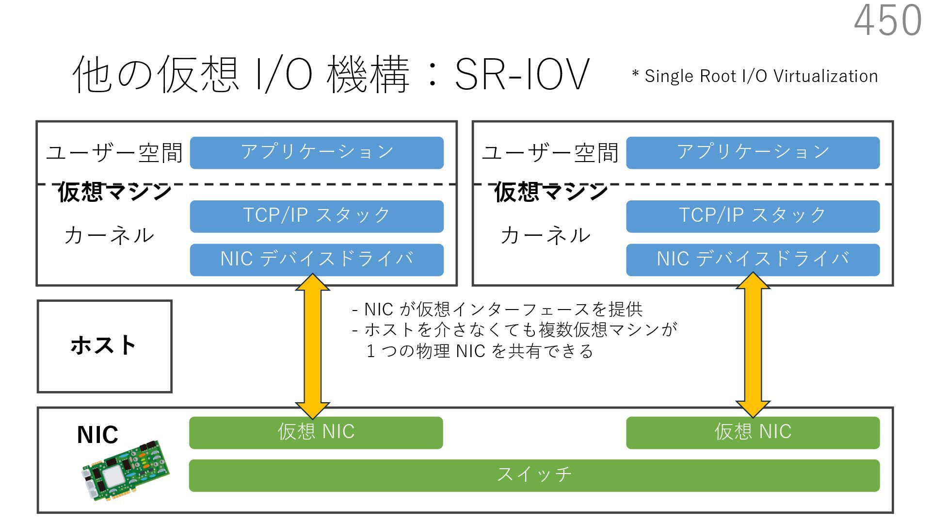 (SIGCOMM 2014) • mTCP (NSDI 2014) • Arrakis (OSDI 2014) • IX (OSDI 2014) • StackMap (USENIX ATC 2016) • Atlas (SIGCOMM 2017) • ZygOS (SOSP 2017) • Shenango (NSDI 2019) • Shinjuku (NSDI 2019) • TAS (EuroSys 2019) • Caladan (OSDI 2020) • Demikernel (SOSP 2021) 427 into a single library for both devices (e.g., RDMAxSPDK). We implemented the bulk of our library OS code in Rust. We initially prototyped several libOSes in C++; however, we found that Rust performs competitively with C++ and achieves ns-scale latencies while offering additional benefits. First, Rust enforces memory safety through language fea- tures and its compiler. Though our libOSes use unsafe code to bind to C/C++ kernel-bypass libraries and applications, User-space Software Kernel-space Software I/O Hardware I/O Device ??? libFuture ??? DPDK User I/O Buf. Mgmt libRDMA RDMA User I/O Buf. Mgmt Net. Trans. OS Kernel Control Path Demikernel Datapath Architecture App libPOSIX libDPDK SPDK User I/O Buf. Mgmt libSPDK Future Demikernel PDPIX Datapath API Figure 3. Demikernel kernel-bypass architecture. Demikernel ac- commodates heterogenous kernel-bypass devices, including poten- tial future hardware, with a flexible library OS-based datapath ar- chitecture.We include a libOS that goes through the OS kernel for 提案:異なるタイプのデバイスへ 共通のインターフェースからアクセス可能にする Irene Zhang, Amanda Raybuck, Pratyush Patel, Kirk Olynyk, Jacob Nelson, Omar S. Navarro Leija, Ashlie Martinez, Jing Liu, Anna Kornfeld Simpson, Sujay Jayakar, Pedro Henrique Penna, Max Demoulin, Piali Choudhury, and Anirudh Badam. 2021. The Demikernel Datapath OS Architecture for Microsecond-Scale Datacenter Systems. In Proceedings of the ACM Sigops 28th Symposium on Operating Systems Principles (SOSP ʼ21), 195-211.(https://doi.org/10.1145/3477132.3483569)