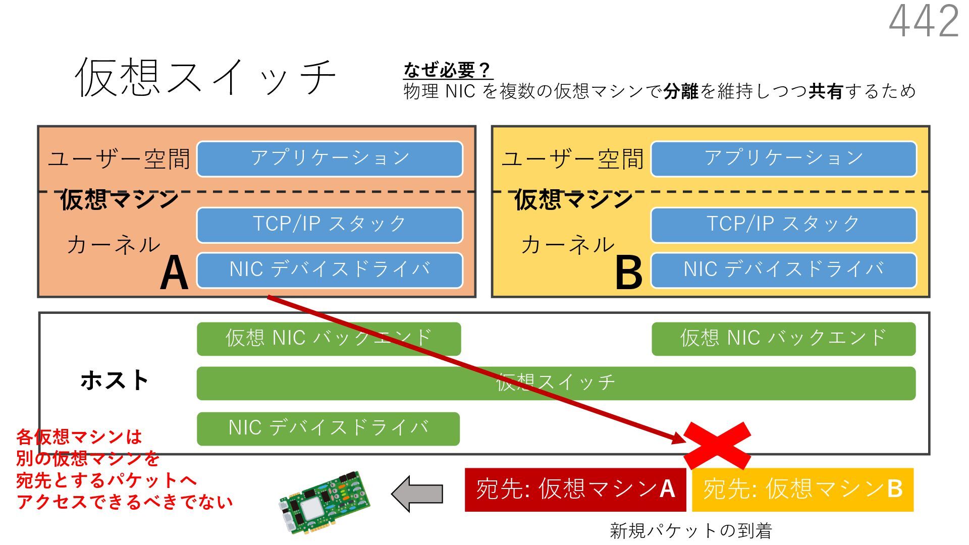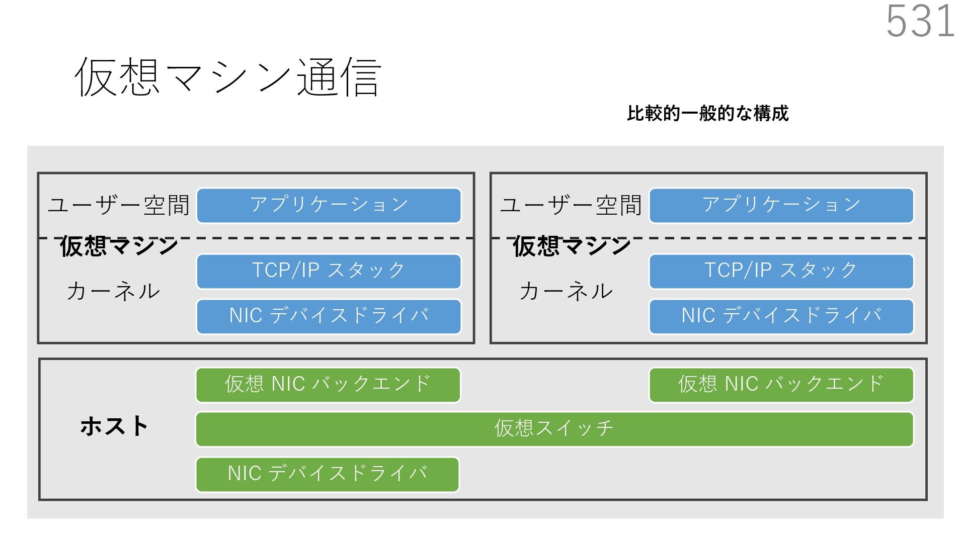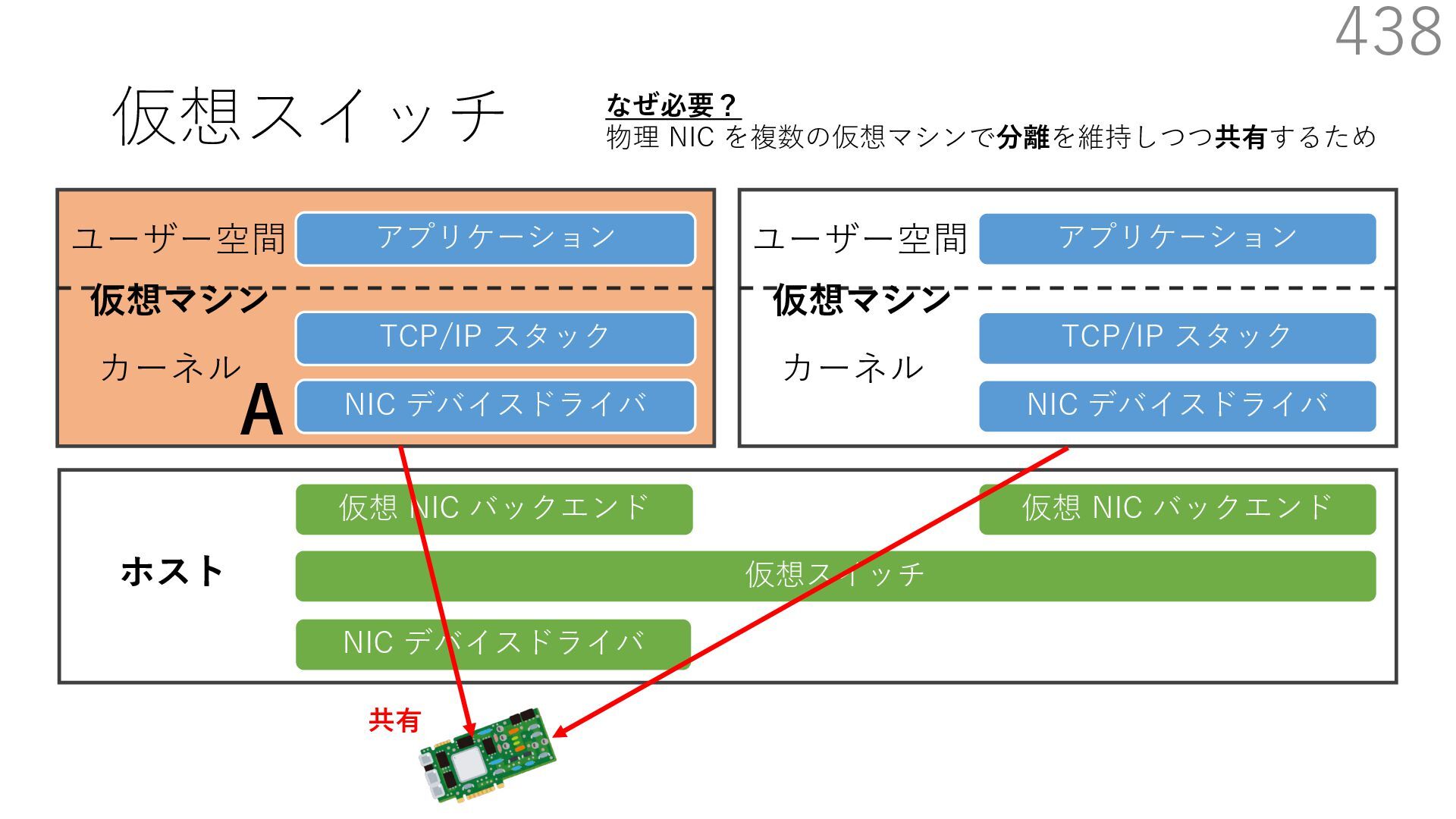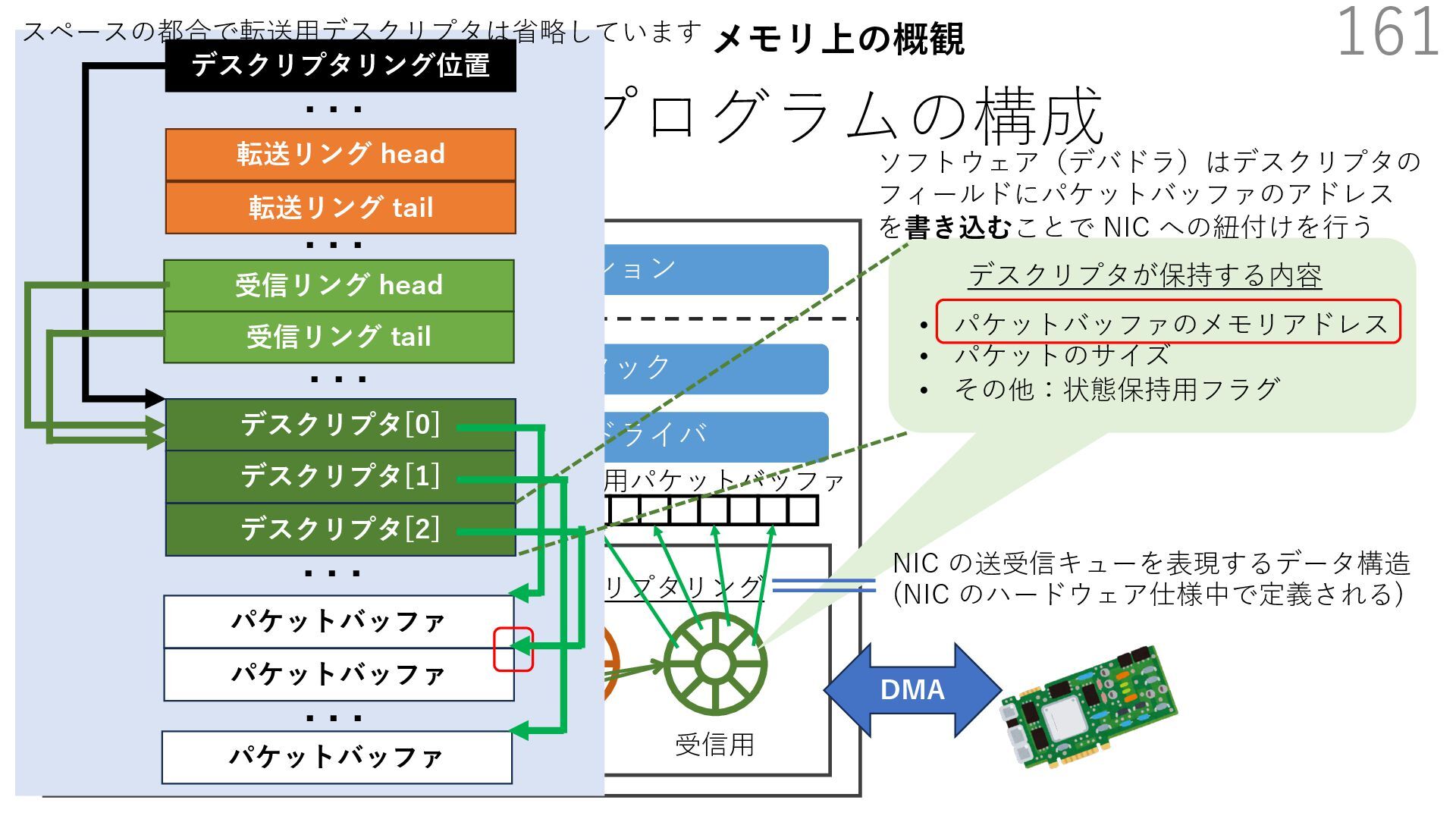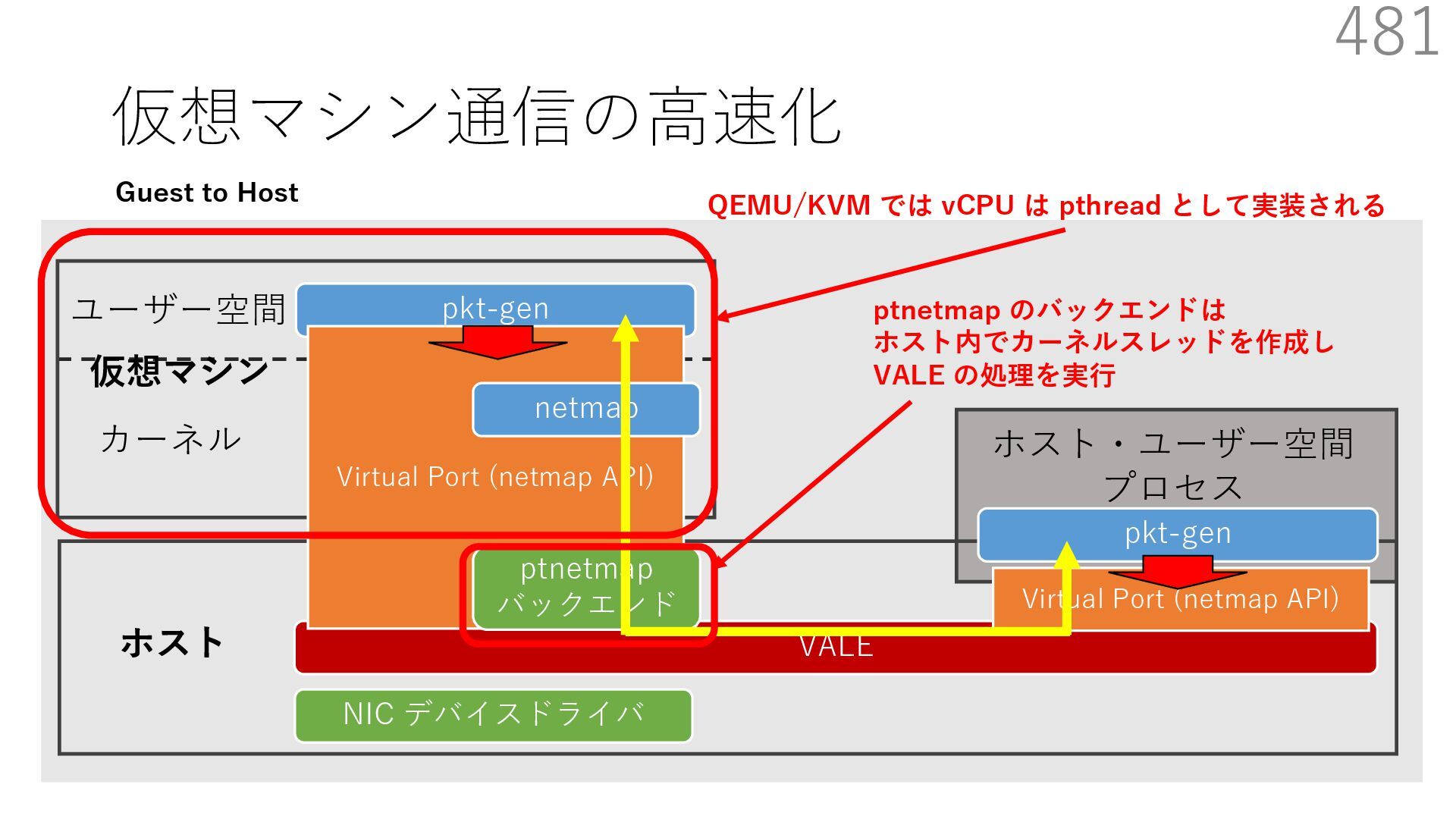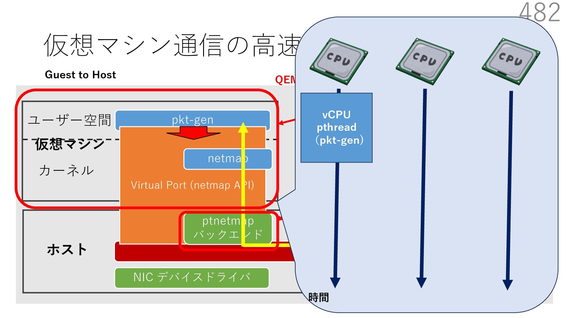 (SIGCOMM 2014) • mTCP (NSDI 2014) • Arrakis (OSDI 2014) • IX (OSDI 2014) • StackMap (USENIX ATC 2016) • Atlas (SIGCOMM 2017) • ZygOS (SOSP 2017) • Shenango (NSDI 2019) • Shinjuku (NSDI 2019) • TAS (EuroSys 2019) • Caladan (OSDI 2020) • Demikernel (SOSP 2021) 427 into a single library for both devices (e.g., RDMAxSPDK). We implemented the bulk of our library OS code in Rust. We initially prototyped several libOSes in C++; however, we found that Rust performs competitively with C++ and achieves ns-scale latencies while offering additional benefits. First, Rust enforces memory safety through language fea- tures and its compiler. Though our libOSes use unsafe code to bind to C/C++ kernel-bypass libraries and applications, User-space Software Kernel-space Software I/O Hardware I/O Device ??? libFuture ??? DPDK User I/O Buf. Mgmt libRDMA RDMA User I/O Buf. Mgmt Net. Trans. OS Kernel Control Path Demikernel Datapath Architecture App libPOSIX libDPDK SPDK User I/O Buf. Mgmt libSPDK Future Demikernel PDPIX Datapath API Figure 3. Demikernel kernel-bypass architecture. Demikernel ac- commodates heterogenous kernel-bypass devices, including poten- tial future hardware, with a flexible library OS-based datapath ar- chitecture.We include a libOS that goes through the OS kernel for 提案:異なるタイプのデバイスへ 共通のインターフェースからアクセス可能にする Irene Zhang, Amanda Raybuck, Pratyush Patel, Kirk Olynyk, Jacob Nelson, Omar S. Navarro Leija, Ashlie Martinez, Jing Liu, Anna Kornfeld Simpson, Sujay Jayakar, Pedro Henrique Penna, Max Demoulin, Piali Choudhury, and Anirudh Badam. 2021. The Demikernel Datapath OS Architecture for Microsecond-Scale Datacenter Systems. In Proceedings of the ACM Sigops 28th Symposium on Operating Systems Principles (SOSP ʼ21), 195-211.(https://doi.org/10.1145/3477132.3483569)