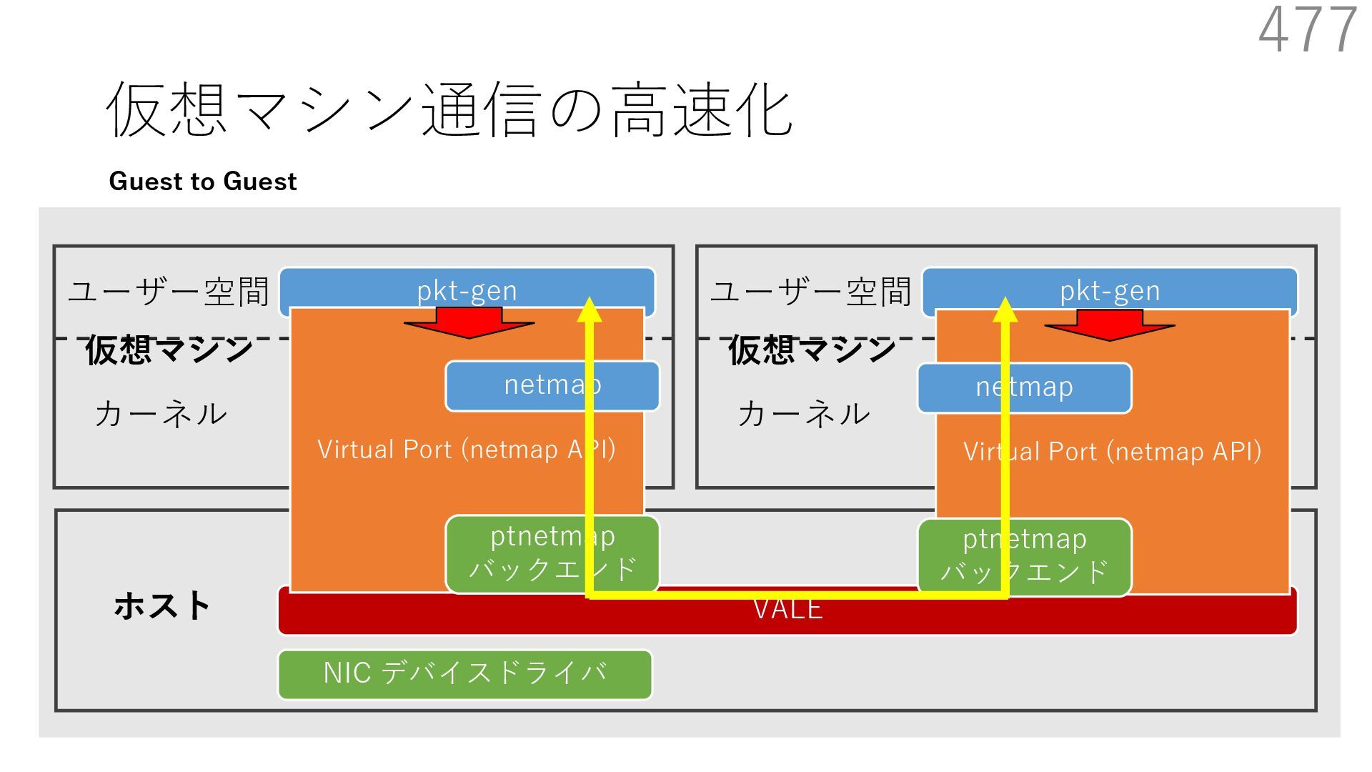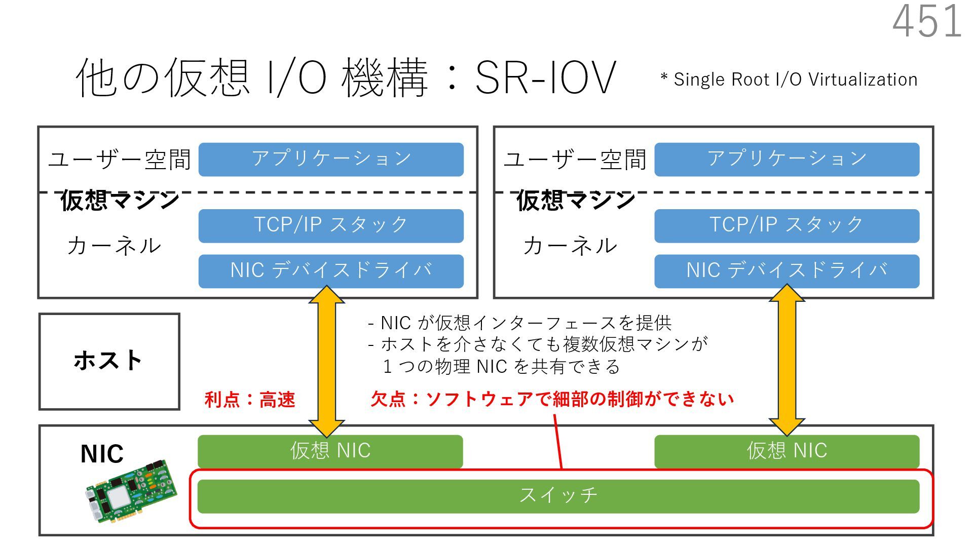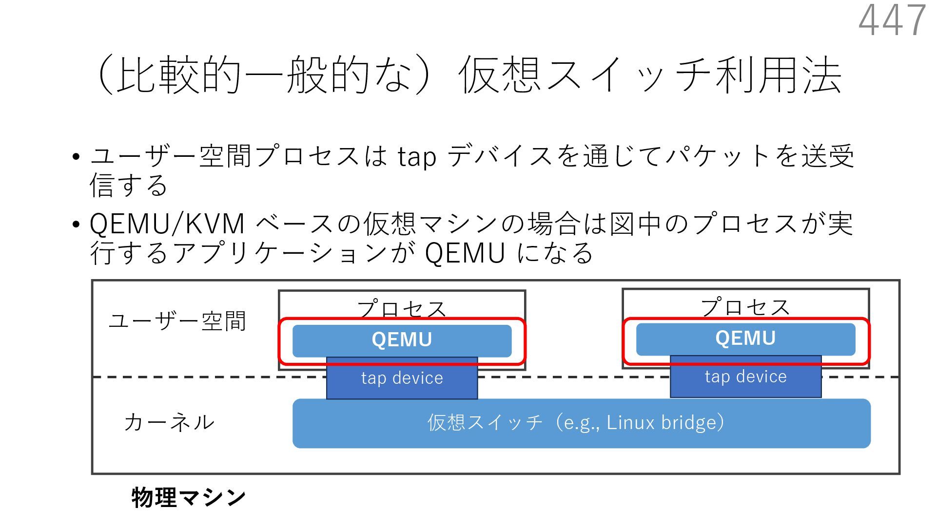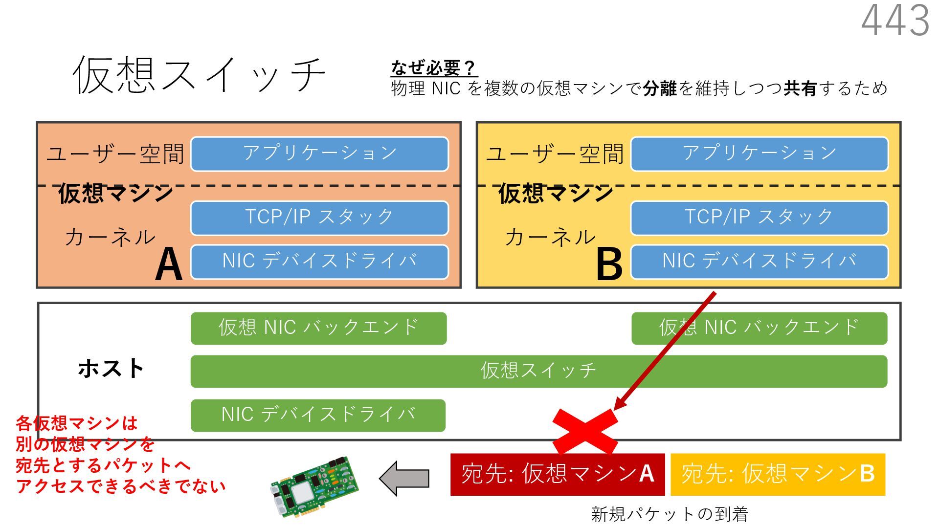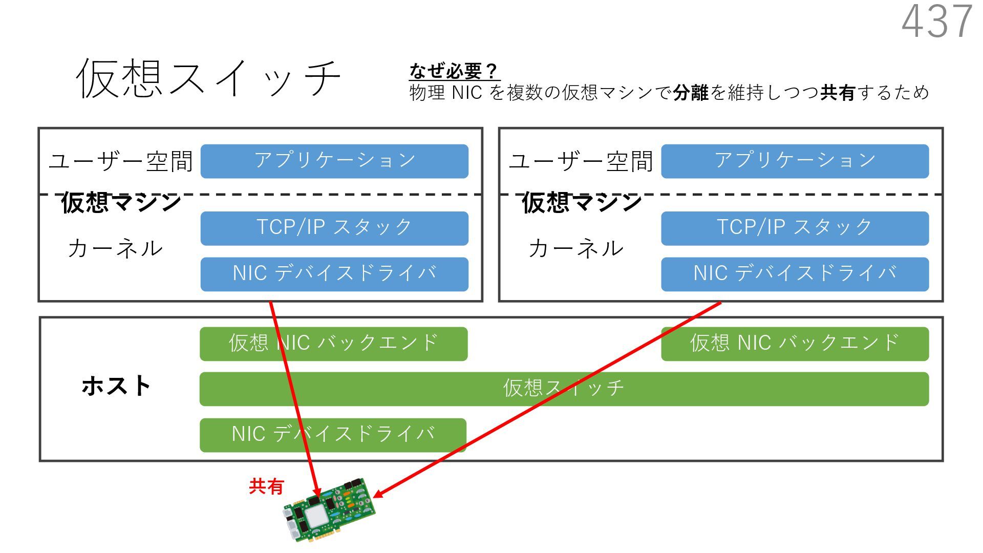 (SIGCOMM 2014) • mTCP (NSDI 2014) • Arrakis (OSDI 2014) • IX (OSDI 2014) • StackMap (USENIX ATC 2016) • Atlas (SIGCOMM 2017) • ZygOS (SOSP 2017) • Shenango (NSDI 2019) • Shinjuku (NSDI 2019) • TAS (EuroSys 2019) • Caladan (OSDI 2020) • Demikernel (SOSP 2021) 427 into a single library for both devices (e.g., RDMAxSPDK). We implemented the bulk of our library OS code in Rust. We initially prototyped several libOSes in C++; however, we found that Rust performs competitively with C++ and achieves ns-scale latencies while offering additional benefits. First, Rust enforces memory safety through language fea- tures and its compiler. Though our libOSes use unsafe code to bind to C/C++ kernel-bypass libraries and applications, User-space Software Kernel-space Software I/O Hardware I/O Device ??? libFuture ??? DPDK User I/O Buf. Mgmt libRDMA RDMA User I/O Buf. Mgmt Net. Trans. OS Kernel Control Path Demikernel Datapath Architecture App libPOSIX libDPDK SPDK User I/O Buf. Mgmt libSPDK Future Demikernel PDPIX Datapath API Figure 3. Demikernel kernel-bypass architecture. Demikernel ac- commodates heterogenous kernel-bypass devices, including poten- tial future hardware, with a flexible library OS-based datapath ar- chitecture.We include a libOS that goes through the OS kernel for 提案:異なるタイプのデバイスへ 共通のインターフェースからアクセス可能にする Irene Zhang, Amanda Raybuck, Pratyush Patel, Kirk Olynyk, Jacob Nelson, Omar S. Navarro Leija, Ashlie Martinez, Jing Liu, Anna Kornfeld Simpson, Sujay Jayakar, Pedro Henrique Penna, Max Demoulin, Piali Choudhury, and Anirudh Badam. 2021. The Demikernel Datapath OS Architecture for Microsecond-Scale Datacenter Systems. In Proceedings of the ACM Sigops 28th Symposium on Operating Systems Principles (SOSP ʼ21), 195-211.(https://doi.org/10.1145/3477132.3483569)