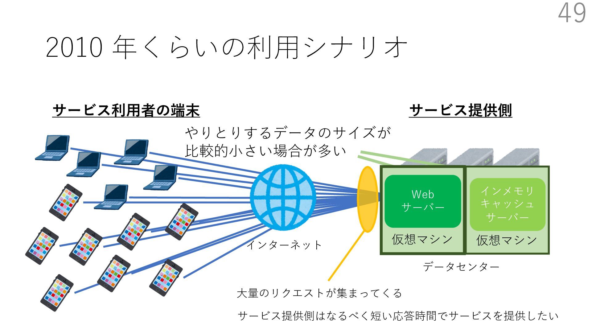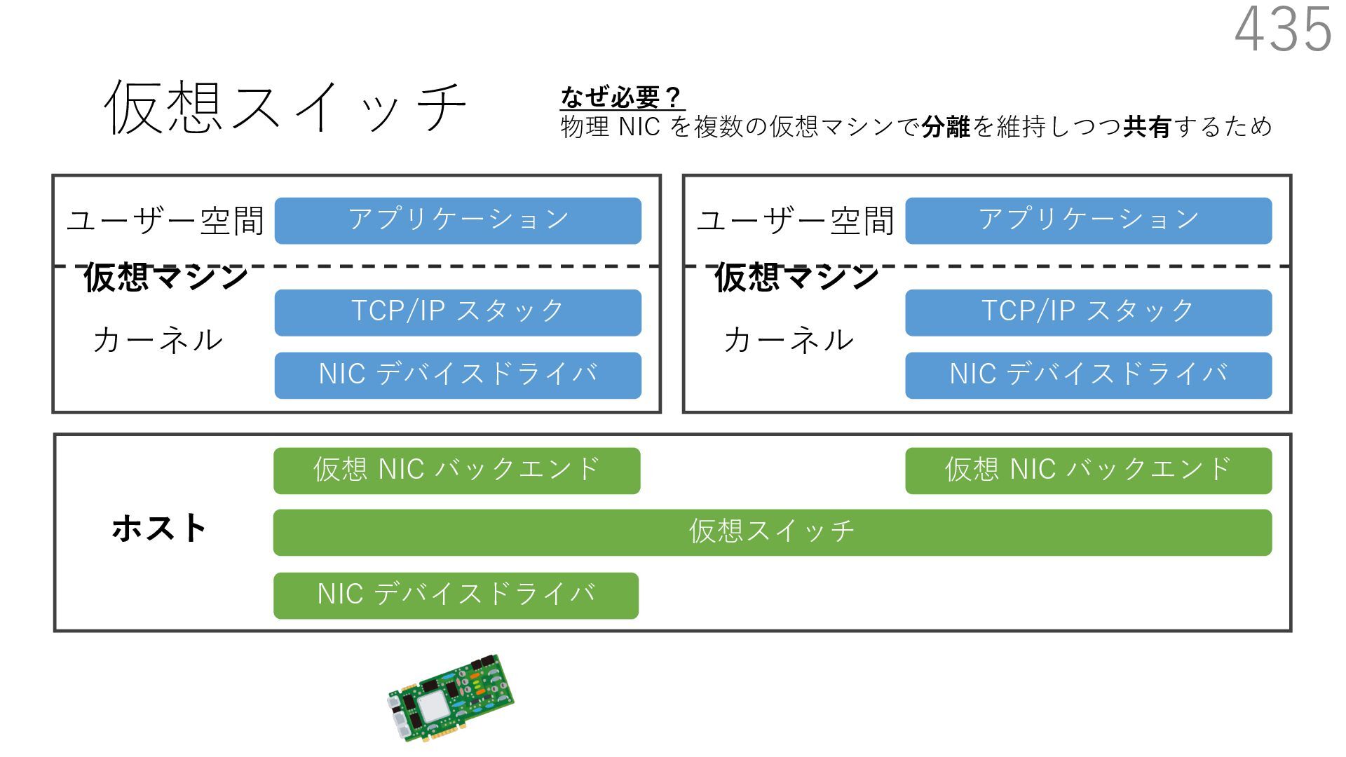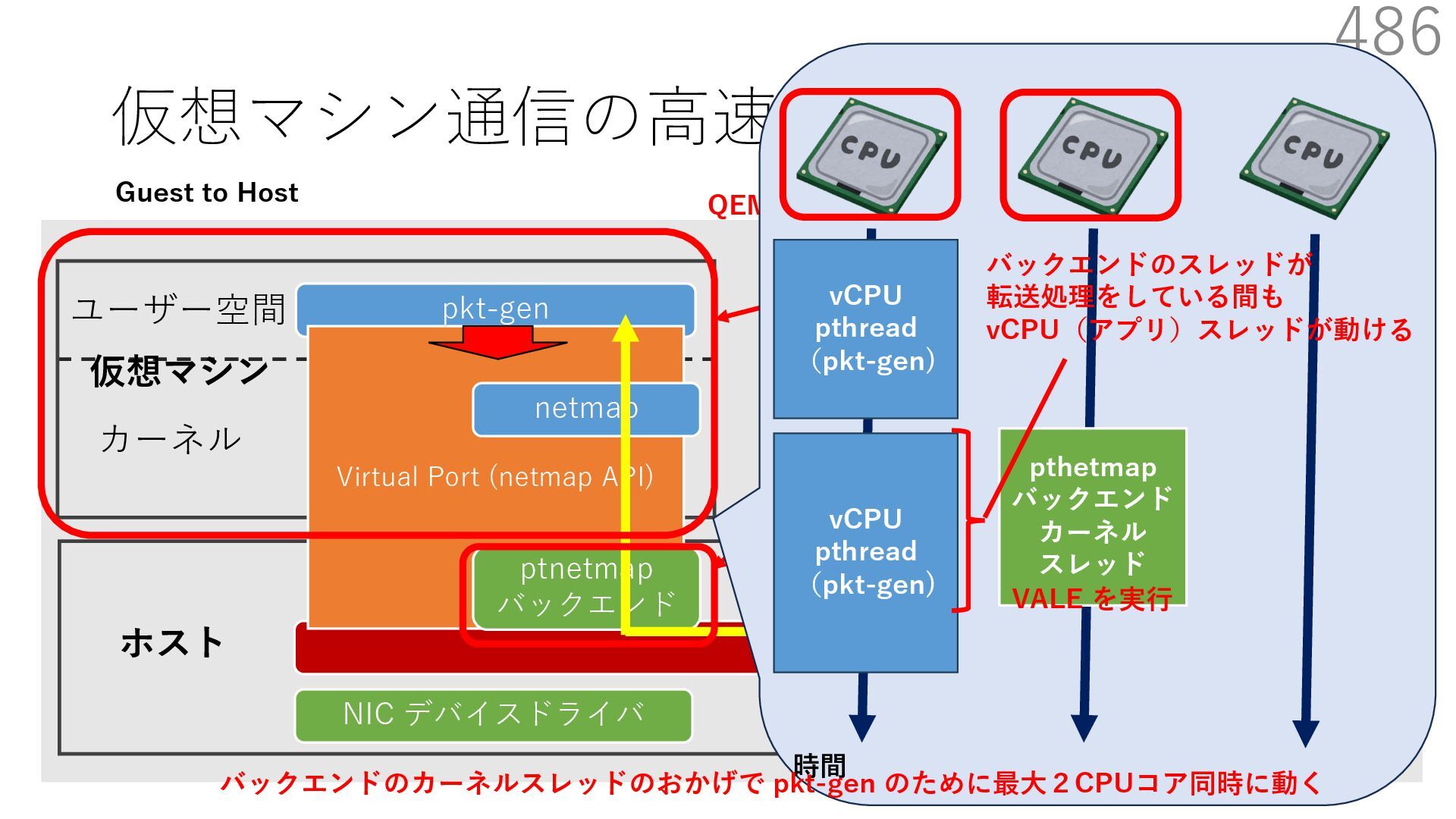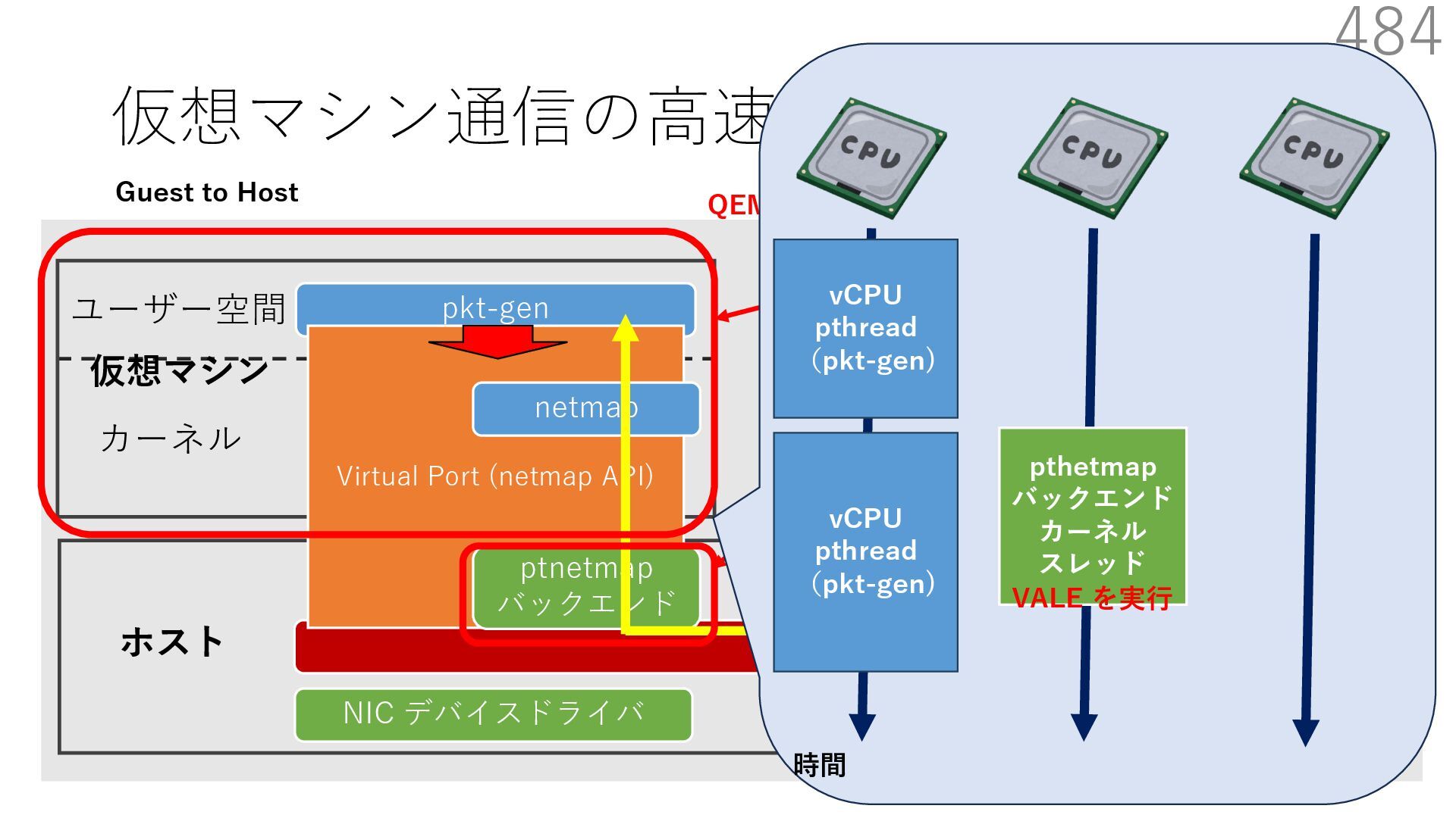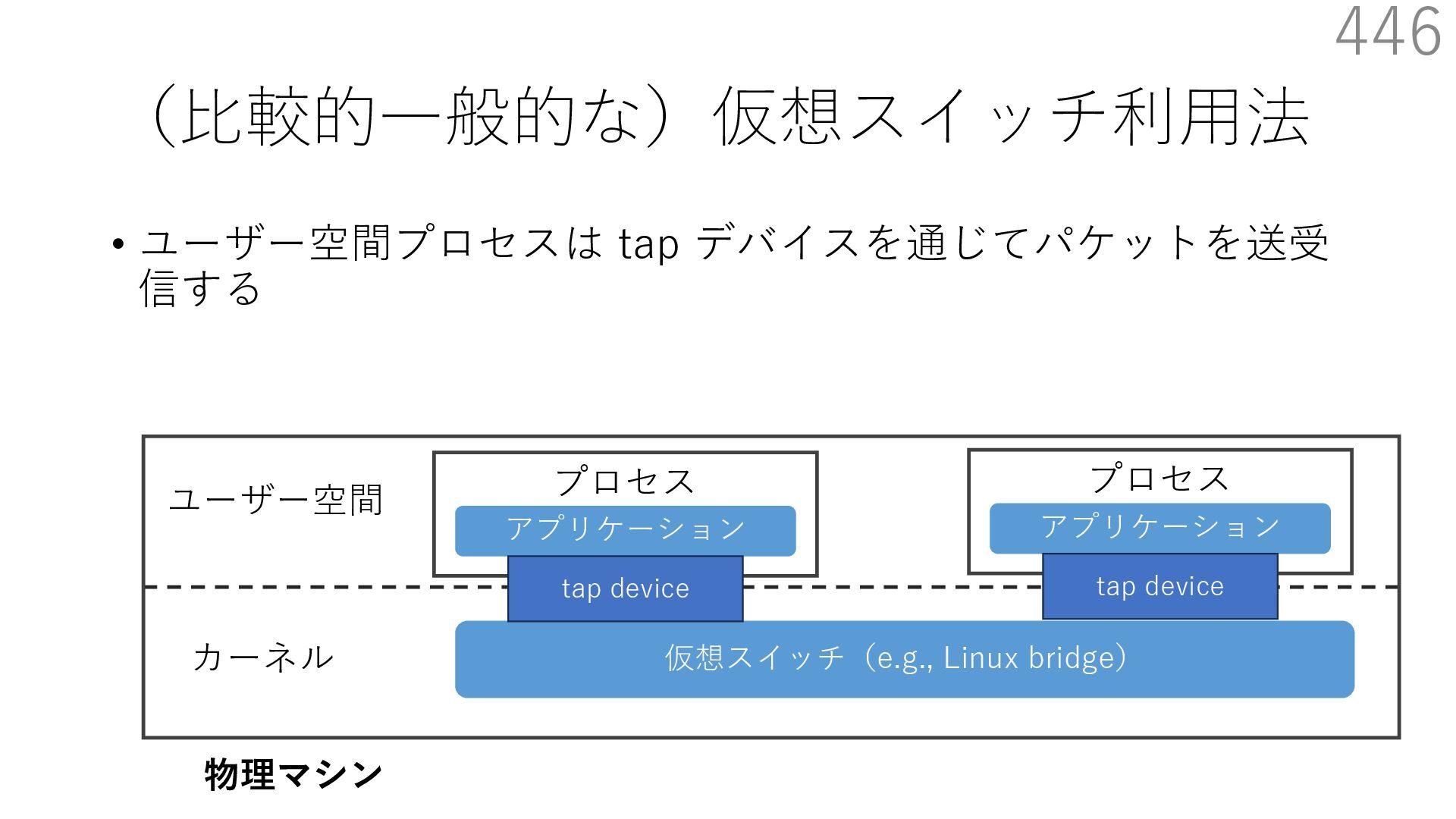 (SIGCOMM 2014) • mTCP (NSDI 2014) • Arrakis (OSDI 2014) • IX (OSDI 2014) • StackMap (USENIX ATC 2016) • Atlas (SIGCOMM 2017) • ZygOS (SOSP 2017) • Shenango (NSDI 2019) • Shinjuku (NSDI 2019) • TAS (EuroSys 2019) • Caladan (OSDI 2020) • Demikernel (SOSP 2021) 427 into a single library for both devices (e.g., RDMAxSPDK). We implemented the bulk of our library OS code in Rust. We initially prototyped several libOSes in C++; however, we found that Rust performs competitively with C++ and achieves ns-scale latencies while offering additional benefits. First, Rust enforces memory safety through language fea- tures and its compiler. Though our libOSes use unsafe code to bind to C/C++ kernel-bypass libraries and applications, User-space Software Kernel-space Software I/O Hardware I/O Device ??? libFuture ??? DPDK User I/O Buf. Mgmt libRDMA RDMA User I/O Buf. Mgmt Net. Trans. OS Kernel Control Path Demikernel Datapath Architecture App libPOSIX libDPDK SPDK User I/O Buf. Mgmt libSPDK Future Demikernel PDPIX Datapath API Figure 3. Demikernel kernel-bypass architecture. Demikernel ac- commodates heterogenous kernel-bypass devices, including poten- tial future hardware, with a flexible library OS-based datapath ar- chitecture.We include a libOS that goes through the OS kernel for 提案:異なるタイプのデバイスへ 共通のインターフェースからアクセス可能にする Irene Zhang, Amanda Raybuck, Pratyush Patel, Kirk Olynyk, Jacob Nelson, Omar S. Navarro Leija, Ashlie Martinez, Jing Liu, Anna Kornfeld Simpson, Sujay Jayakar, Pedro Henrique Penna, Max Demoulin, Piali Choudhury, and Anirudh Badam. 2021. The Demikernel Datapath OS Architecture for Microsecond-Scale Datacenter Systems. In Proceedings of the ACM Sigops 28th Symposium on Operating Systems Principles (SOSP ʼ21), 195-211.(https://doi.org/10.1145/3477132.3483569)