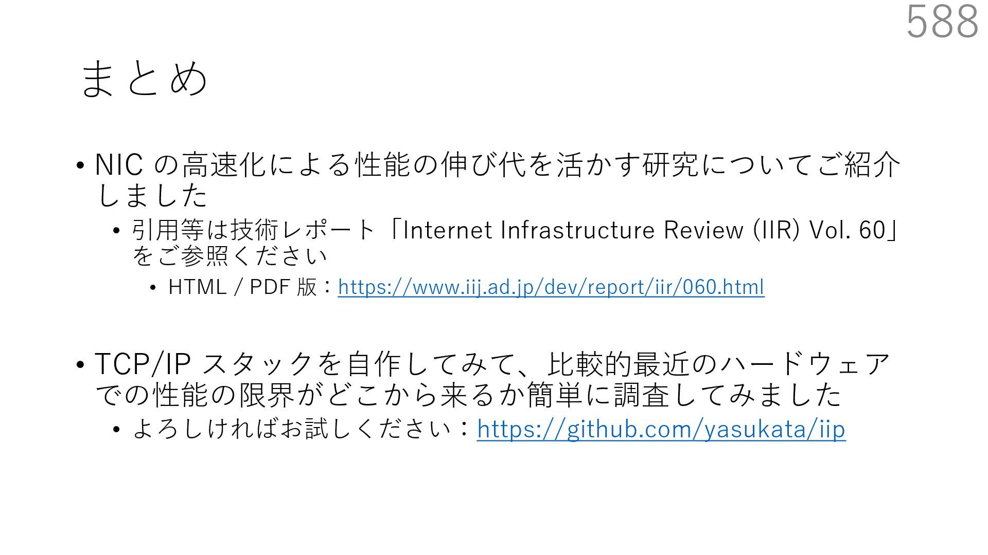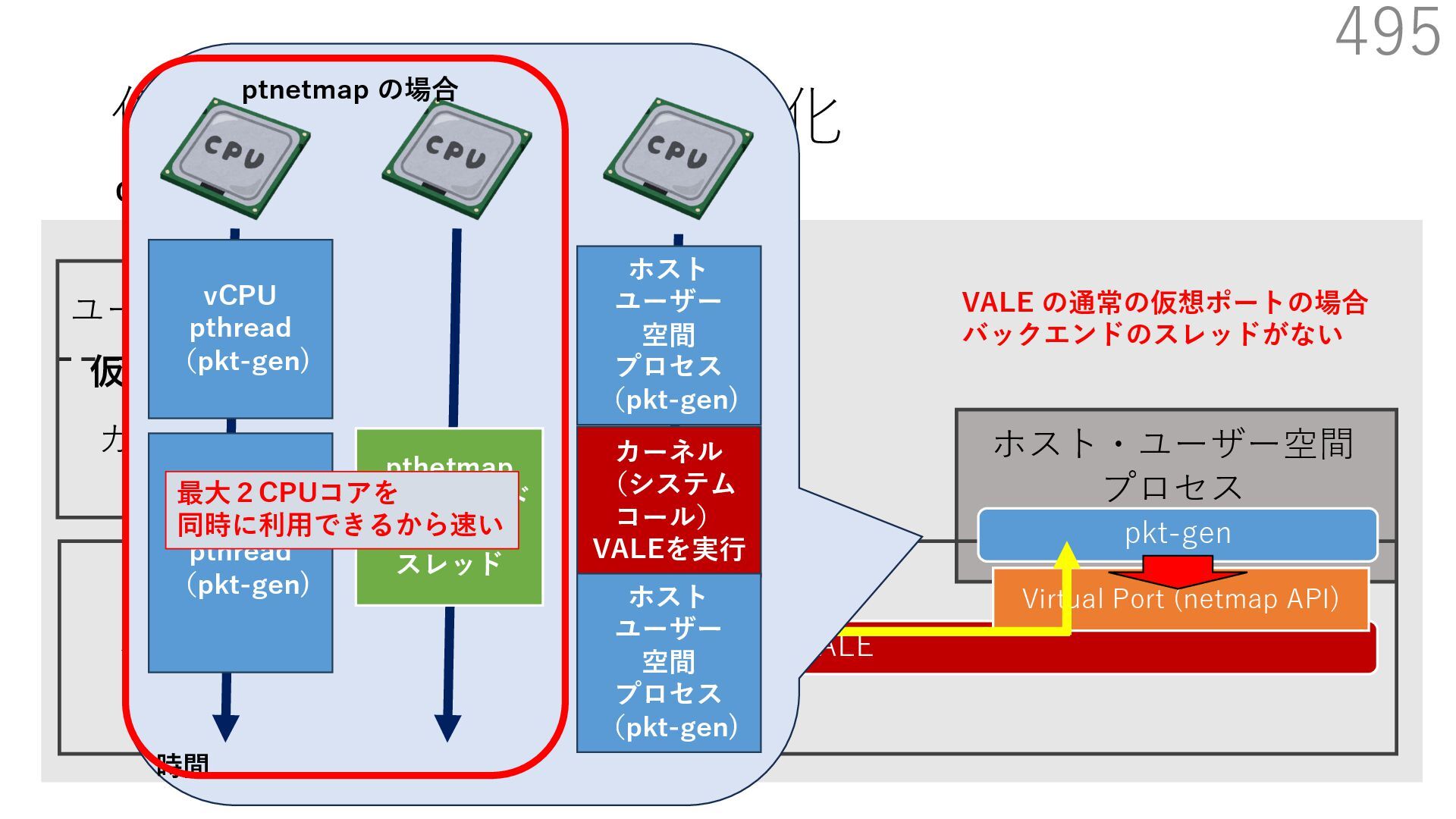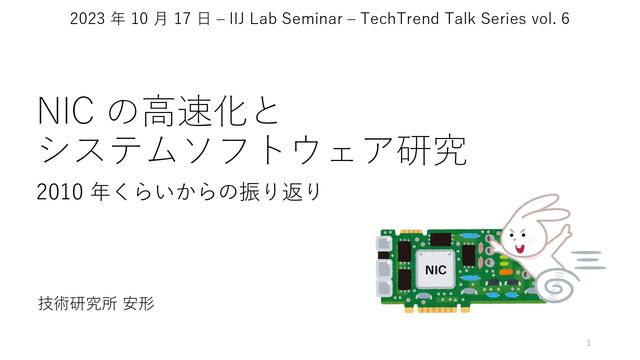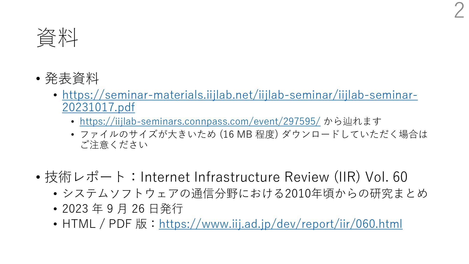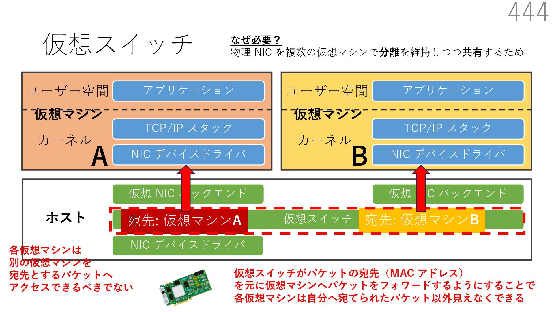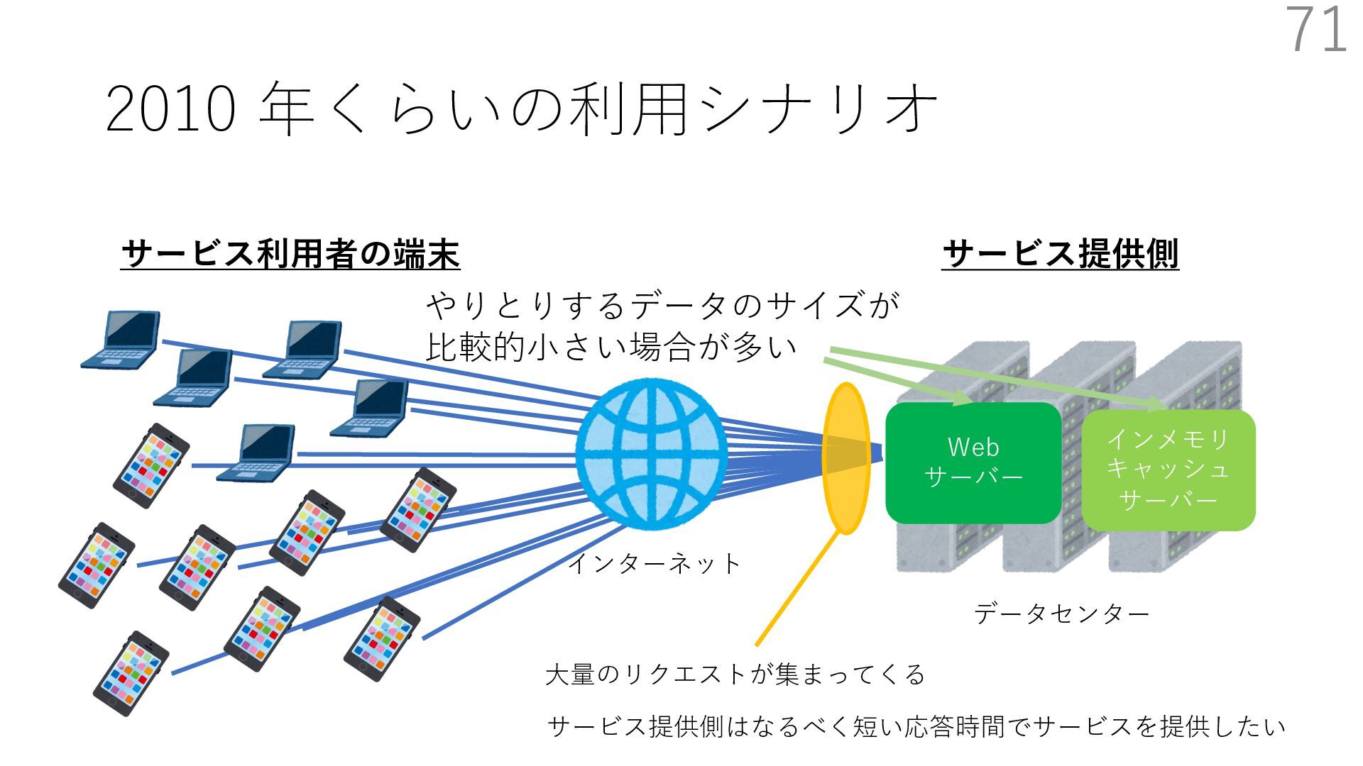 (SIGCOMM 2014) • mTCP (NSDI 2014) • Arrakis (OSDI 2014) • IX (OSDI 2014) • StackMap (USENIX ATC 2016) • Atlas (SIGCOMM 2017) • ZygOS (SOSP 2017) • Shenango (NSDI 2019) • Shinjuku (NSDI 2019) • TAS (EuroSys 2019) • Caladan (OSDI 2020) • Demikernel (SOSP 2021) 427 into a single library for both devices (e.g., RDMAxSPDK). We implemented the bulk of our library OS code in Rust. We initially prototyped several libOSes in C++; however, we found that Rust performs competitively with C++ and achieves ns-scale latencies while offering additional benefits. First, Rust enforces memory safety through language fea- tures and its compiler. Though our libOSes use unsafe code to bind to C/C++ kernel-bypass libraries and applications, User-space Software Kernel-space Software I/O Hardware I/O Device ??? libFuture ??? DPDK User I/O Buf. Mgmt libRDMA RDMA User I/O Buf. Mgmt Net. Trans. OS Kernel Control Path Demikernel Datapath Architecture App libPOSIX libDPDK SPDK User I/O Buf. Mgmt libSPDK Future Demikernel PDPIX Datapath API Figure 3. Demikernel kernel-bypass architecture. Demikernel ac- commodates heterogenous kernel-bypass devices, including poten- tial future hardware, with a flexible library OS-based datapath ar- chitecture.We include a libOS that goes through the OS kernel for 提案:異なるタイプのデバイスへ 共通のインターフェースからアクセス可能にする Irene Zhang, Amanda Raybuck, Pratyush Patel, Kirk Olynyk, Jacob Nelson, Omar S. Navarro Leija, Ashlie Martinez, Jing Liu, Anna Kornfeld Simpson, Sujay Jayakar, Pedro Henrique Penna, Max Demoulin, Piali Choudhury, and Anirudh Badam. 2021. The Demikernel Datapath OS Architecture for Microsecond-Scale Datacenter Systems. In Proceedings of the ACM Sigops 28th Symposium on Operating Systems Principles (SOSP ʼ21), 195-211.(https://doi.org/10.1145/3477132.3483569)