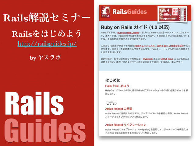 RailsΛ͡ΊΑ͏ Railsղઆηϛφʔ http://railsguides.jp/ by ϠεϥϘ