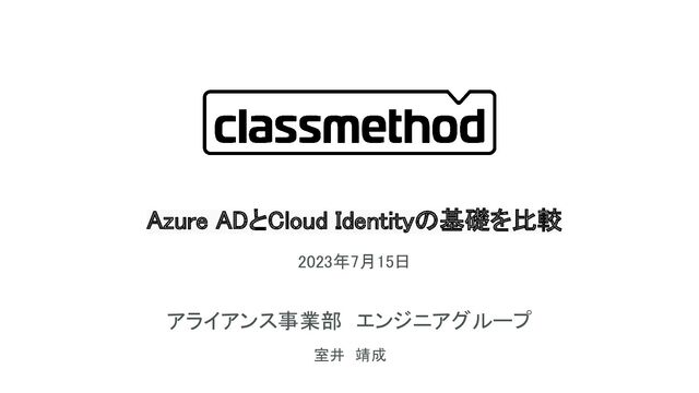 Azure ADとCloud Identityの基礎を比較 2023年7月15日 アライアンス事業部 エンジニアグループ 室井 靖成 1