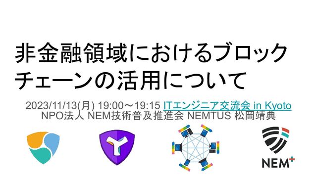 Symbolブロックチェーンの機能の紹介と、それら機能を活かして、非金融領域において、堅牢な分散型DBとして社会のインフラとして公的なデータを低コストに扱うことが求められるような仕組みに役立つのではないか?という提案を、仮想的なユースケースを紹介しつつ語らせてもらったLT資料です。