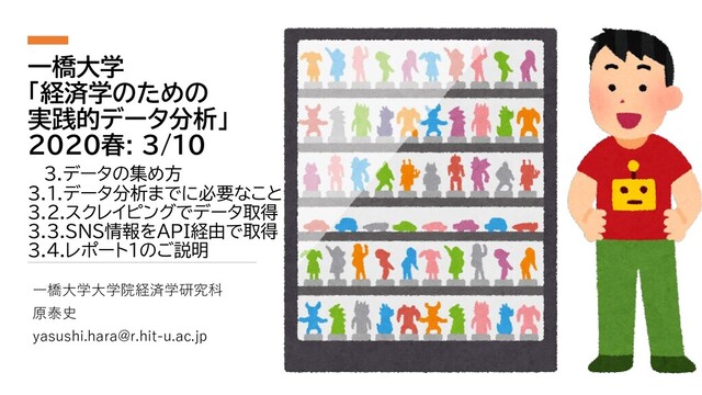一橋大学「 #経済学のための実践的データ分析 」2020年春: 3/10回