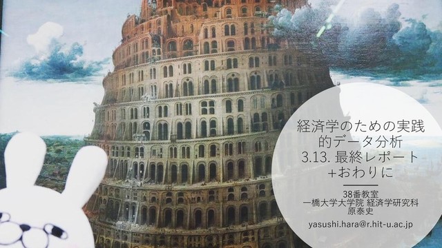 経済学のための実践 的データ分析 3.13. 最終レポート +おわりに 38番教室 一橋大学大学院 経済学研究科 原泰史