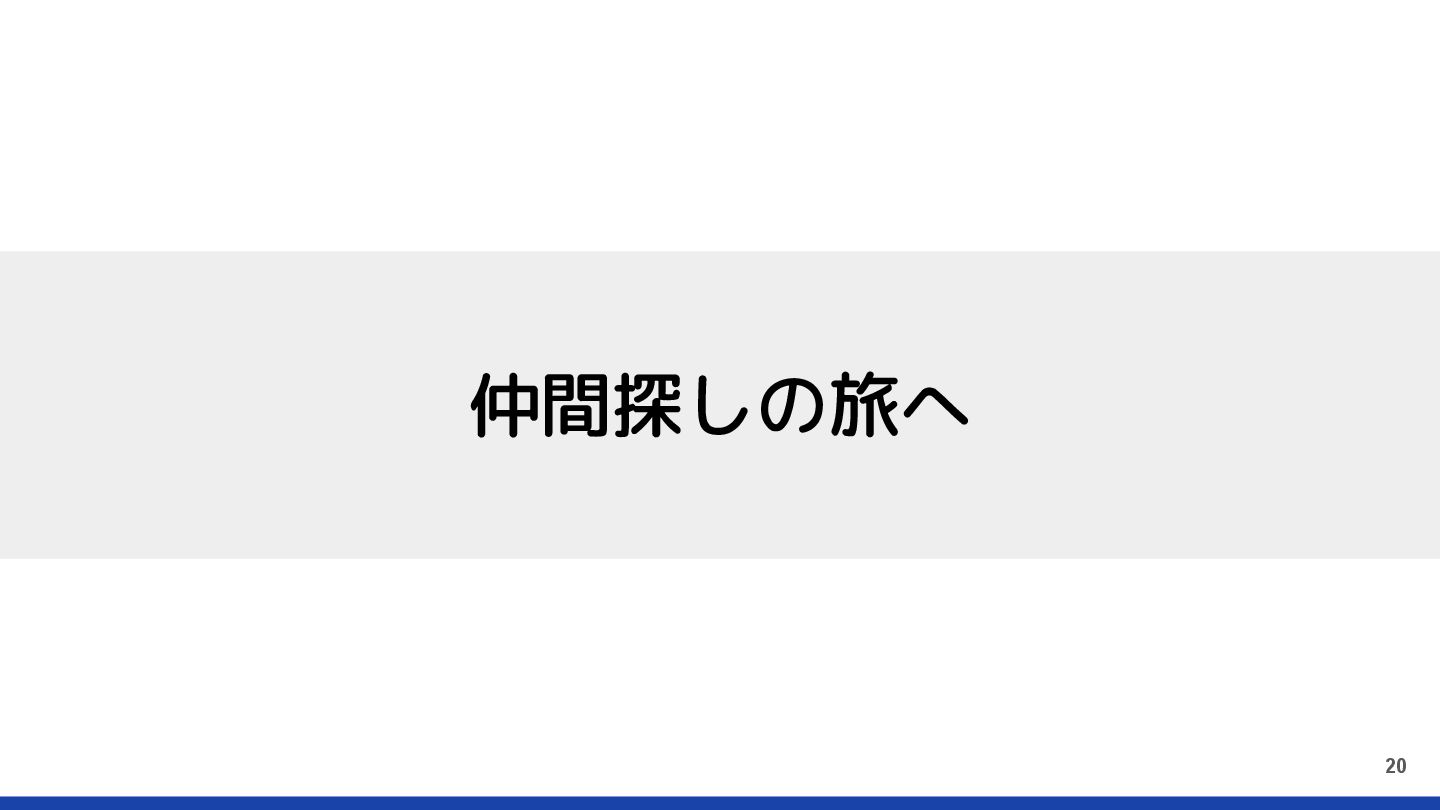 何をやってきたか • 仲間を探す ◦ 仲間になってくれそうな人と話す ◦ 仲間になってくれそうな人の状況を理解する ◦ 自分からは何を与えられるかを考える •