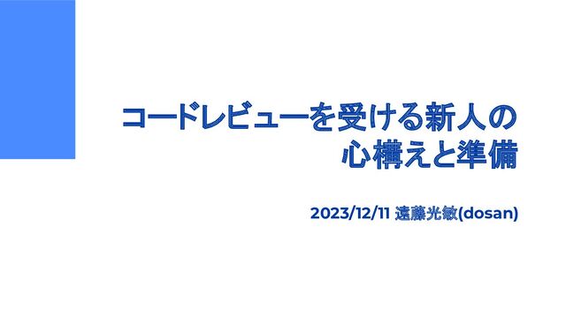コードレビューを受ける新人の 心構えと準備 2023/12/11 遠藤光敏(dosan)