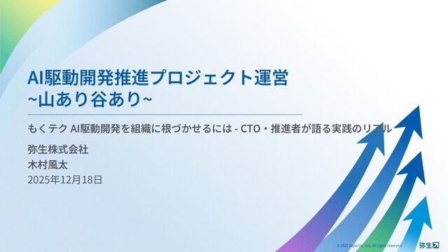 AI駆動開発推進プロジェクト運営 ~山あり谷あり~ もくテク AI駆動開発を組織に根づかせるには - CTO・推進者が語る実践のリアル 弥生株式会社 木村風太 2025年12月18日 ©