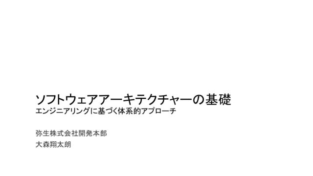 ソフトウェアアーキテクチャーの基礎 エンジニアリングに基づく体系的アプローチ 弥生株式会社開発本部 大森翔太朗