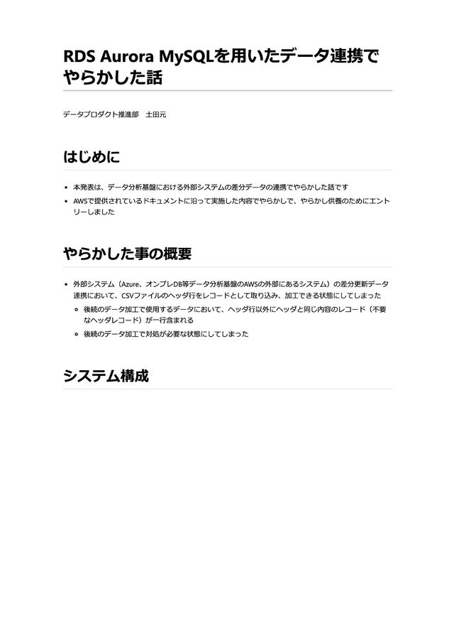 RDS Aurora MySQLを用いたデータ連携でやらかした話/Story about wh...