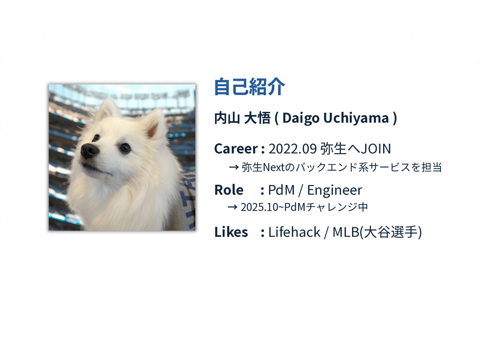 Engineer → 2025.10~PdMチャレンジ中 Likes : Lifehack / MLB(大谷選手) 内山 大悟 ( Daigo Uchiyama )